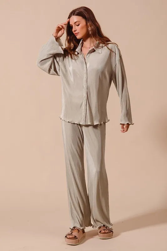 SO ME Pleated Shirt and Pants Set with Wavy Edge Details