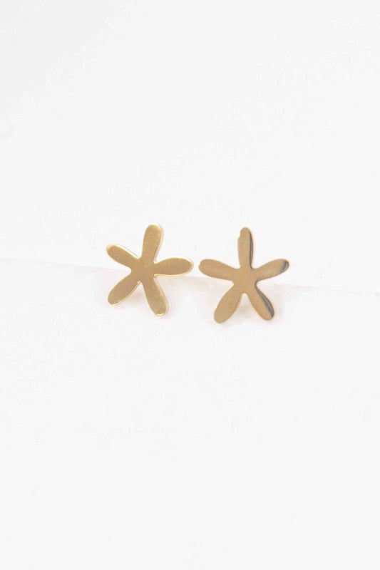 Simple five-petaled flower stud earrings in gold.