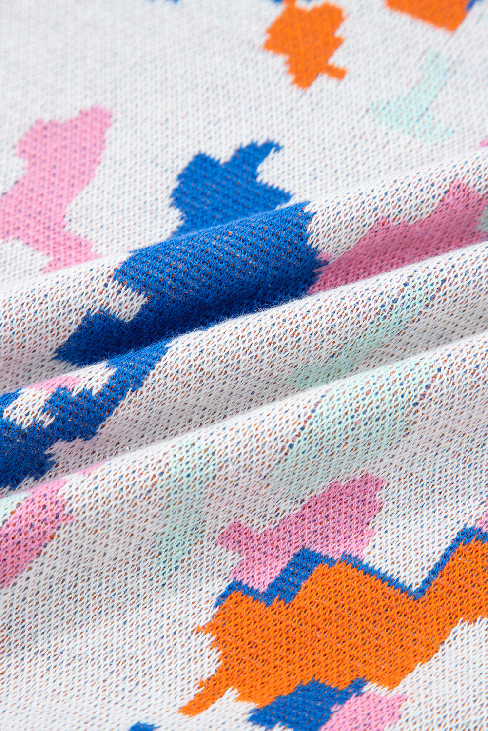 Apricot Abstract Pattern Knit Contrast Striped Trim Short Sleeve Sweater