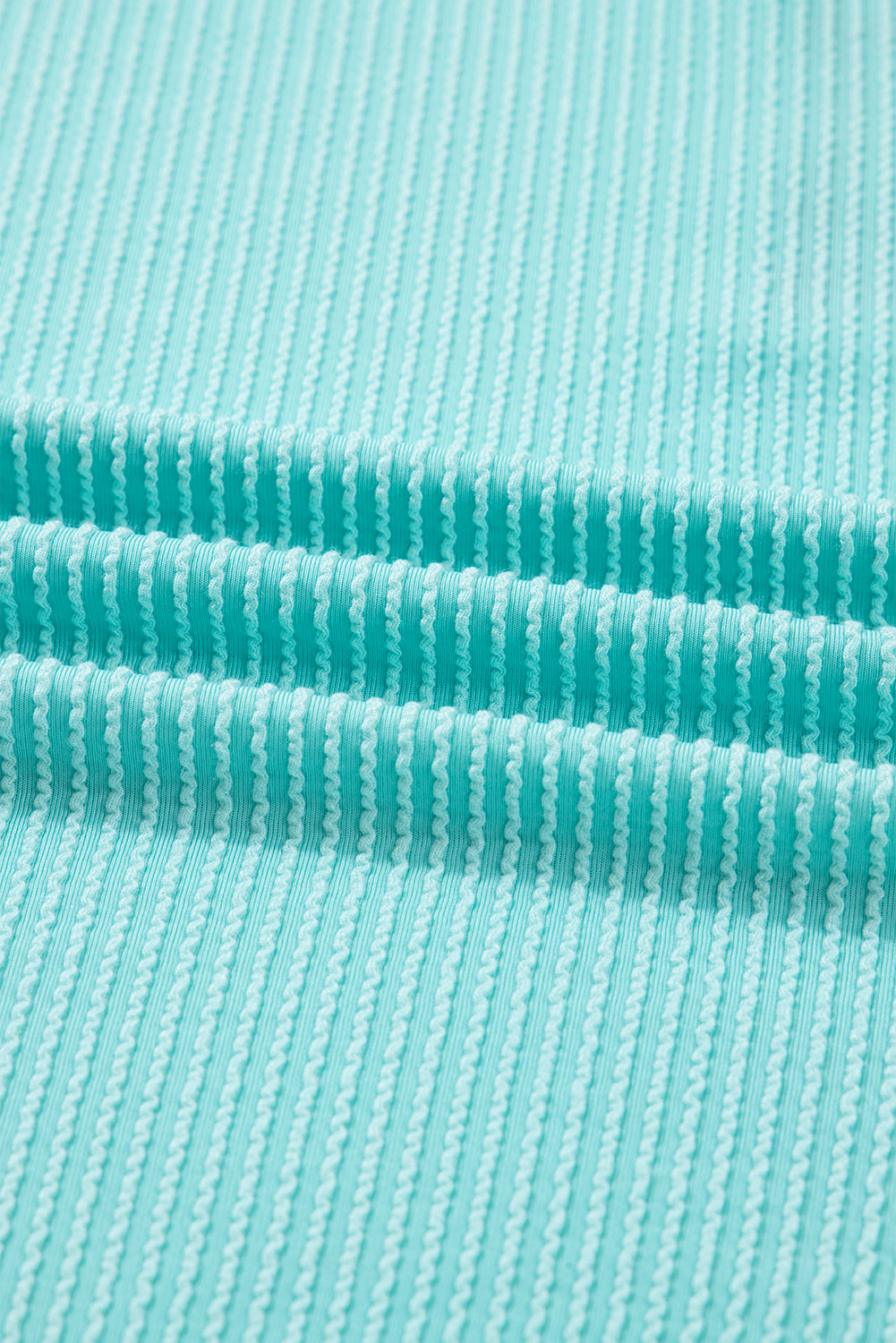 Aruba Blue Twist Ribbed Color Block Plaid Patchwork Plus Size Long Sleeve Top