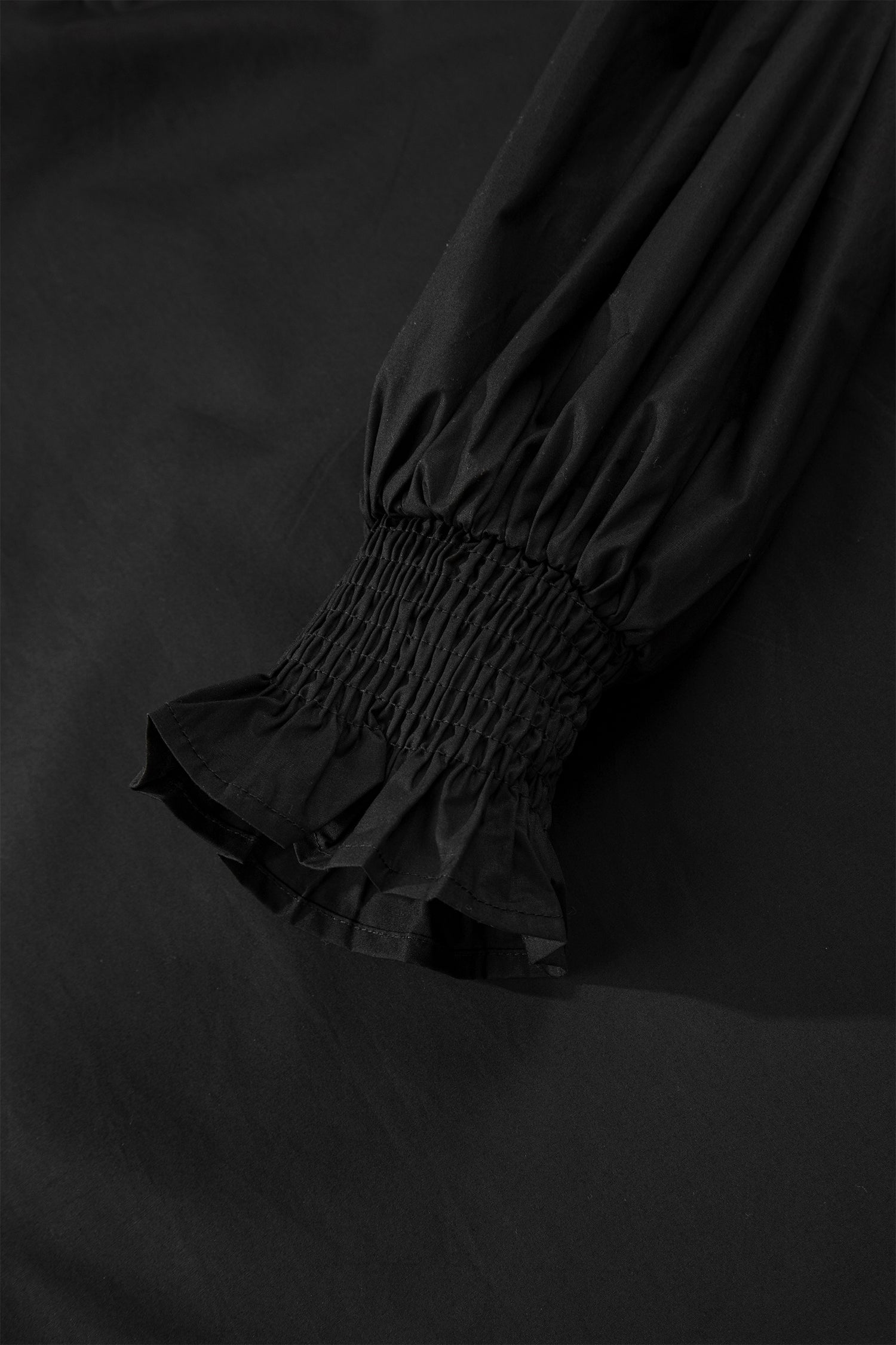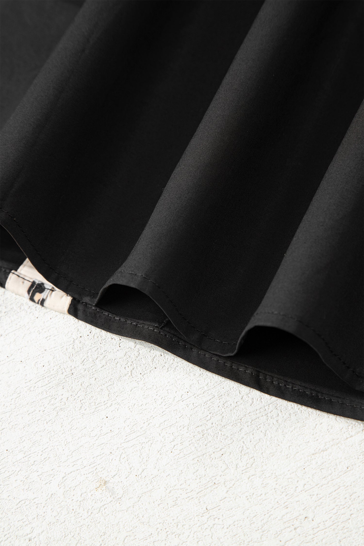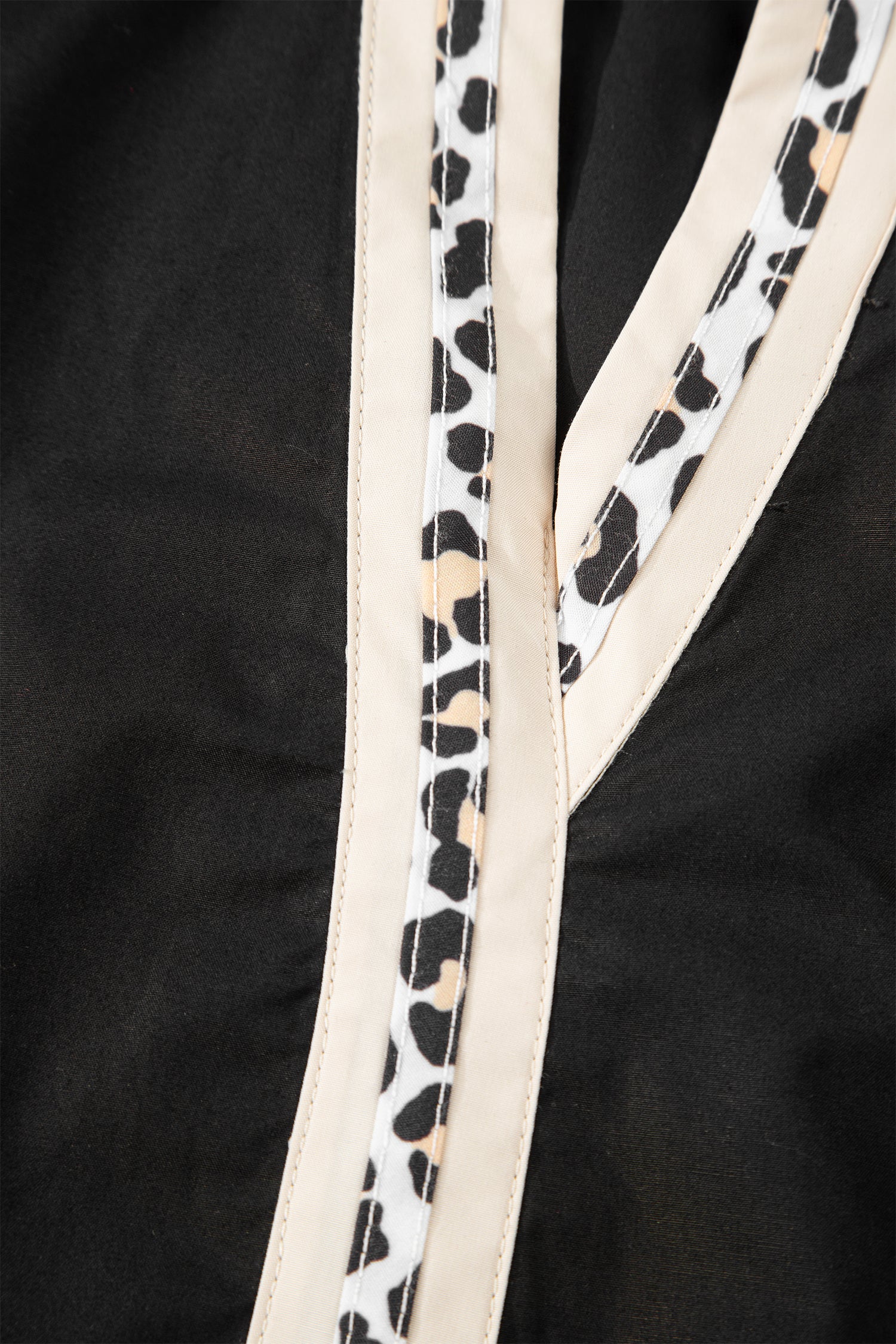 Black Puffy Flounce Sleeve Leopard Trim V Neck Blouse