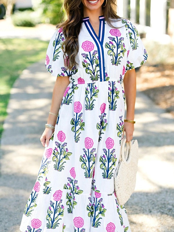 This midi dress features a boho floral print, exuding charm and femininity for sunny days.