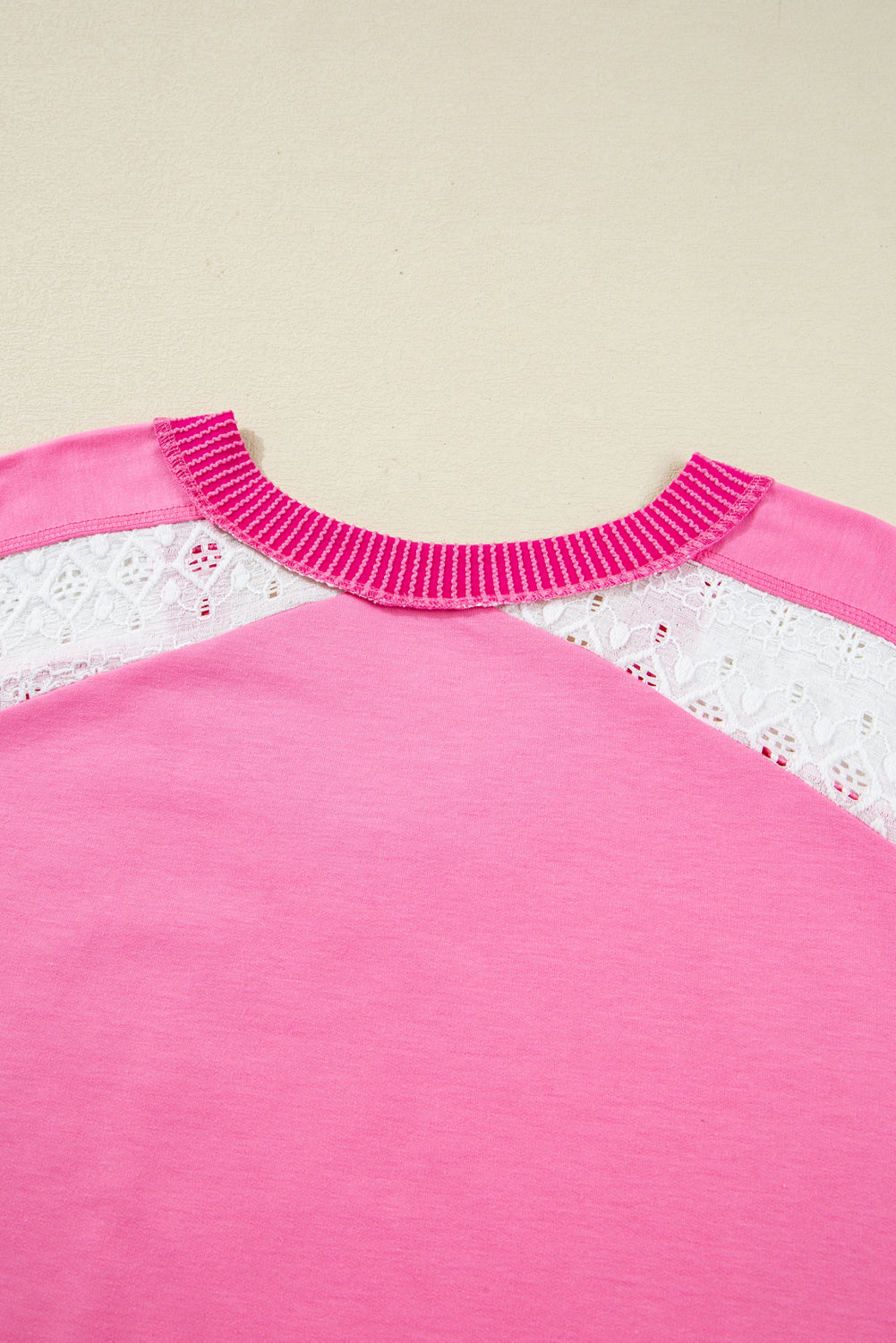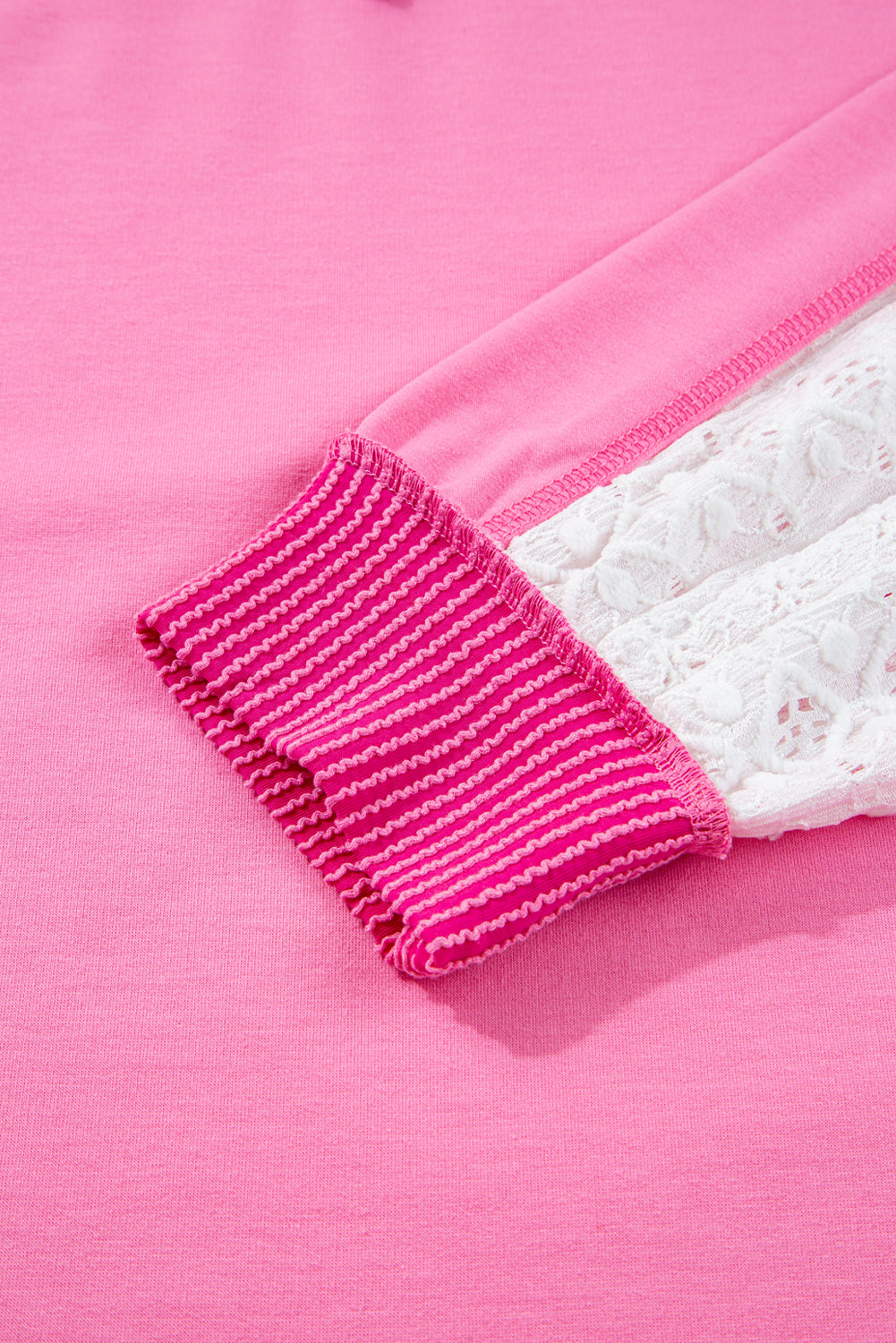 Bonbon Lace Striped Patchwork Long Sleeve Corded V Neck Plus Size Top