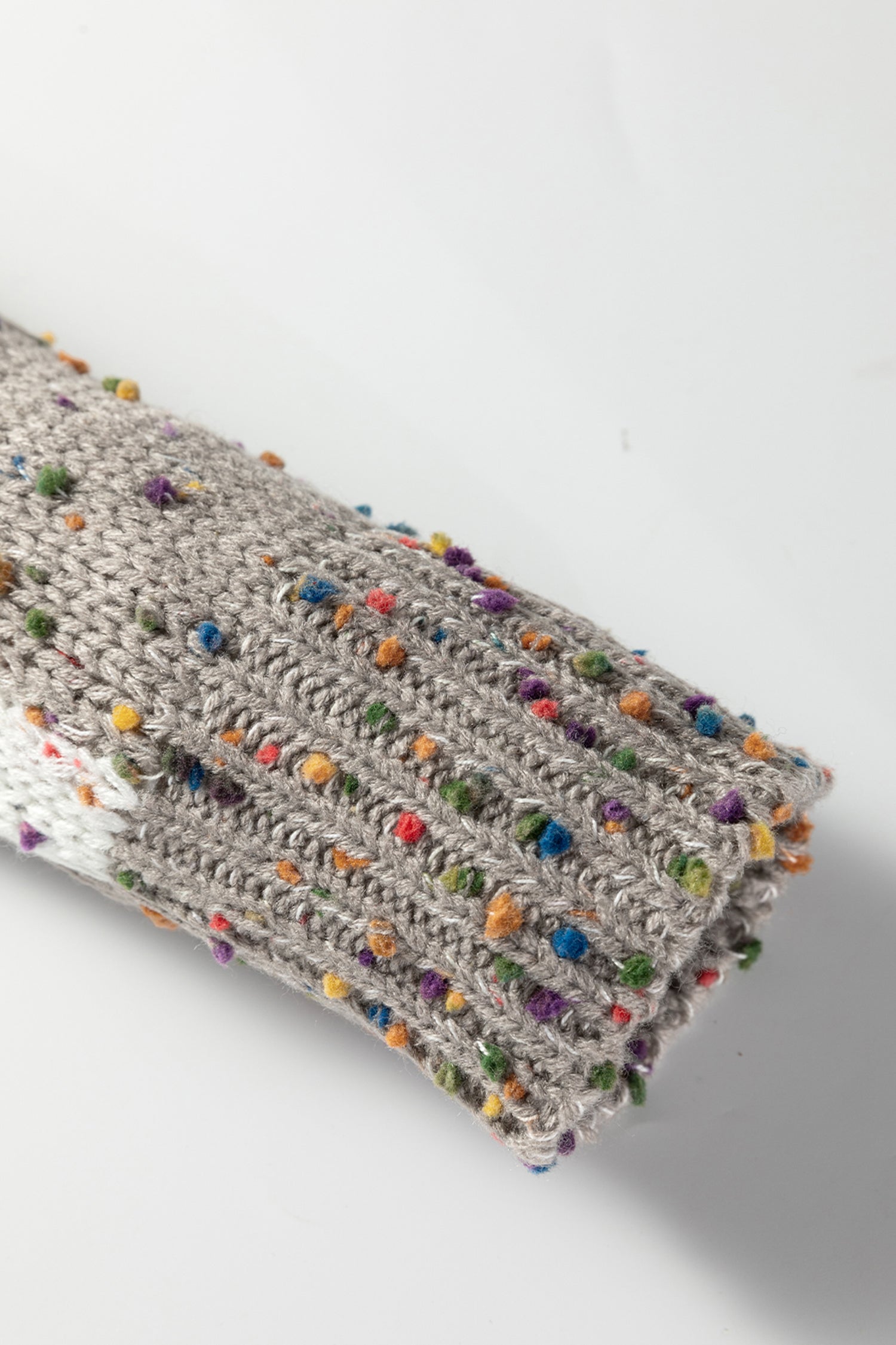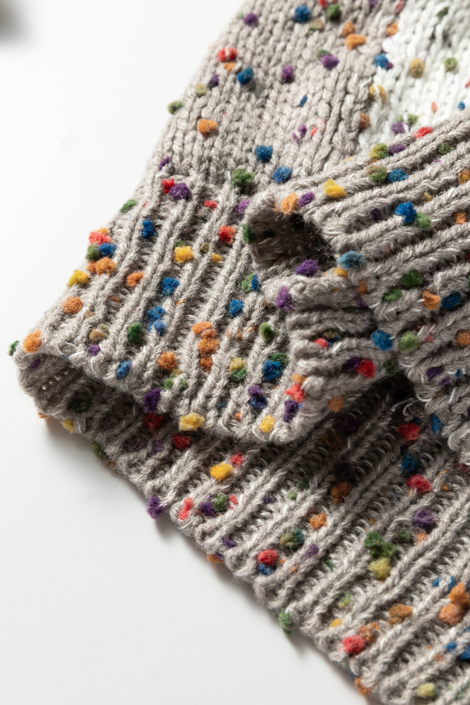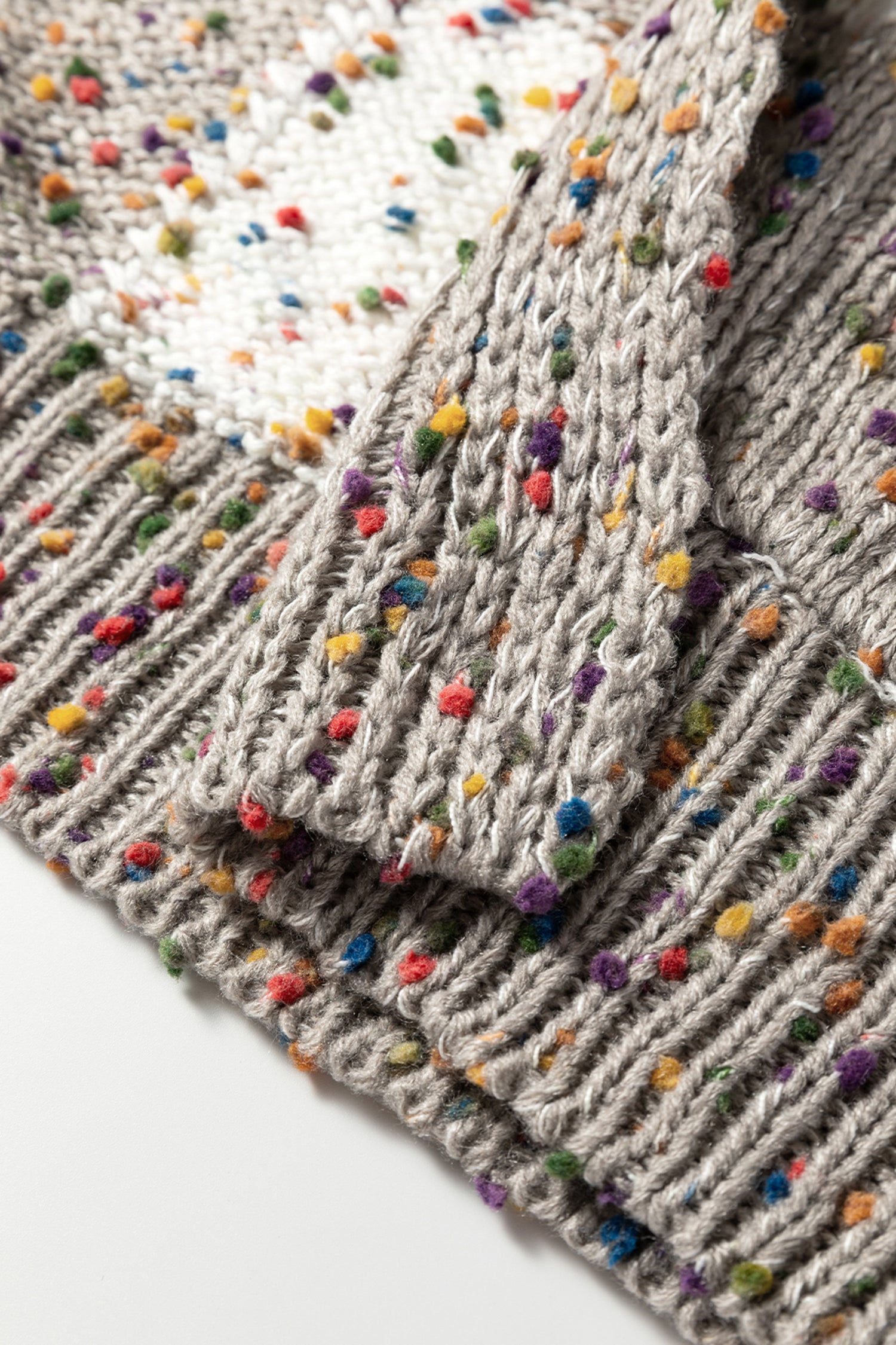- The confetti dot decor adds a colorful romance to this winter cardigan.
