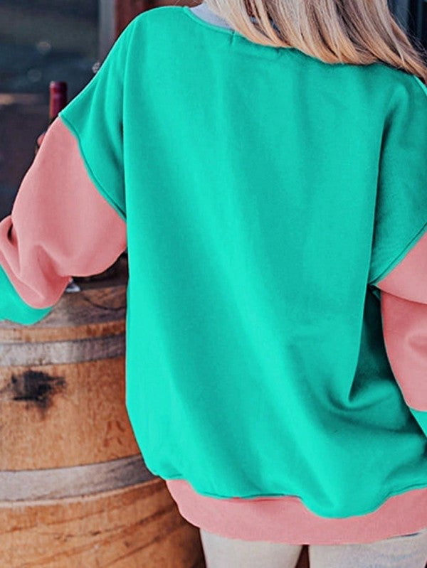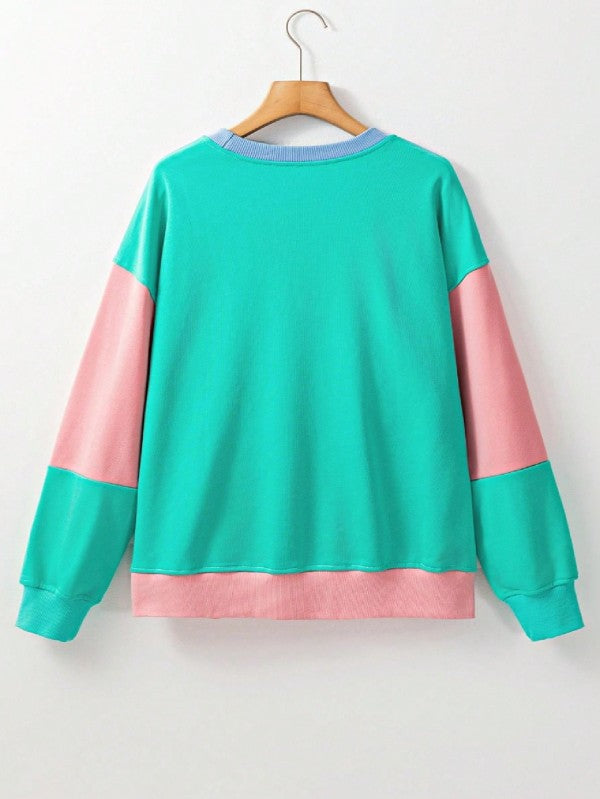 Cotton Colorblock Drop Shoulder Sweatshirt