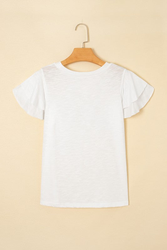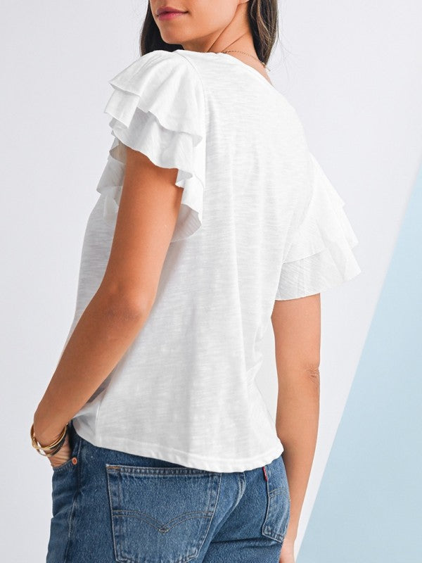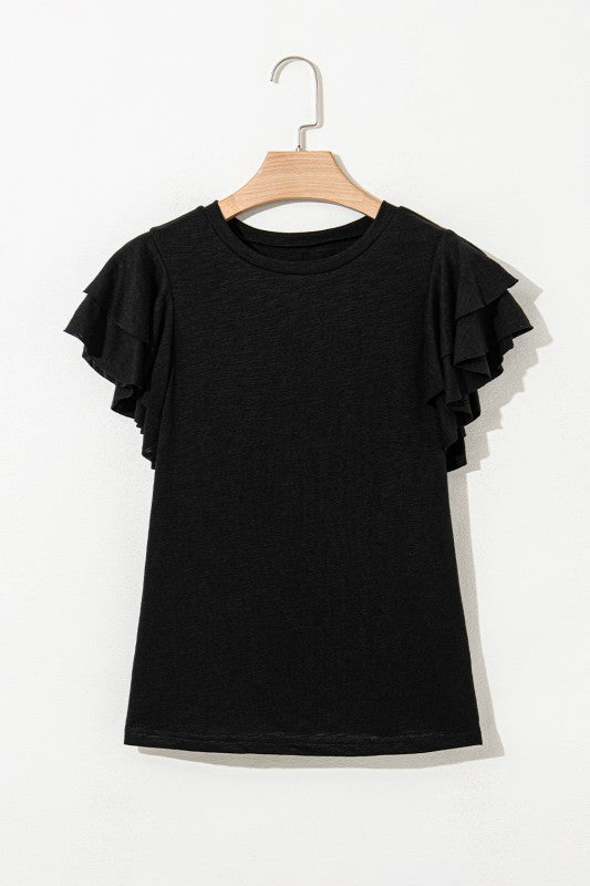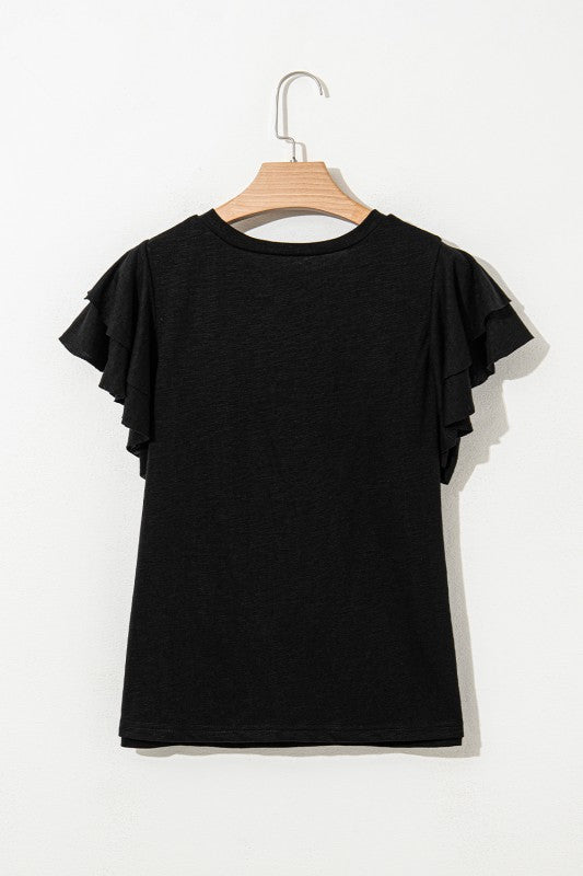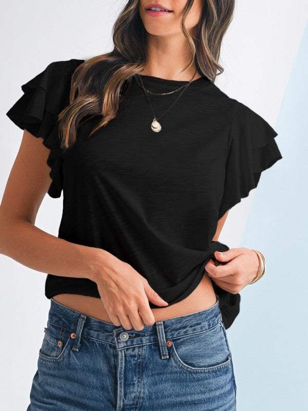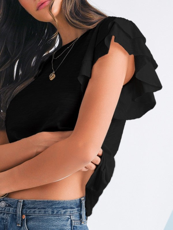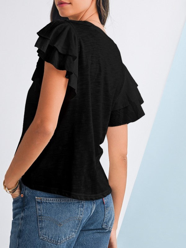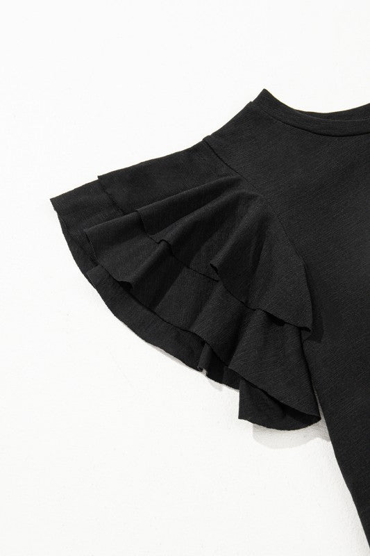 Cotton White Black Ruffle Sleeve Plain Blouse