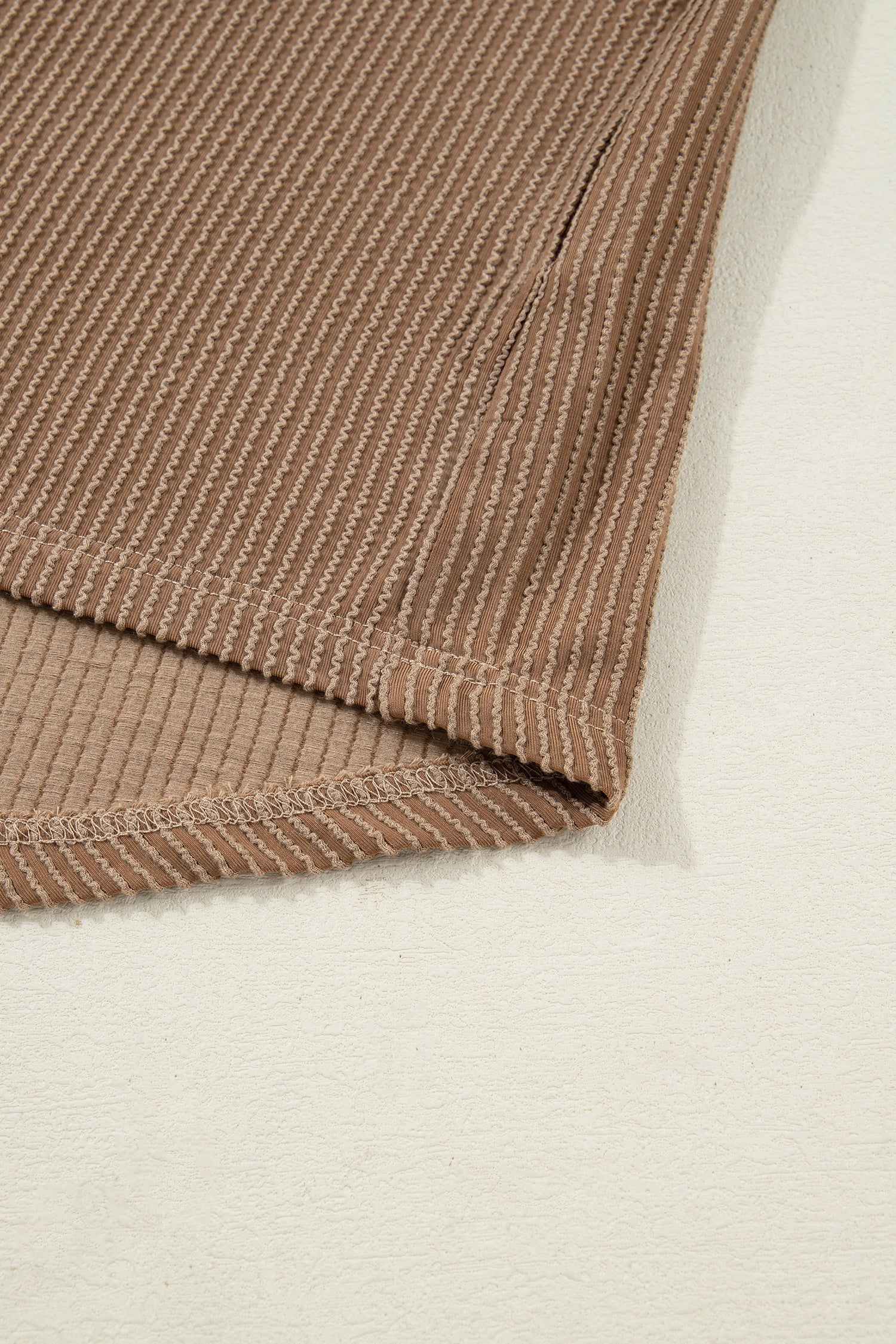 Dark Khaki Twisted Ribbed Leopard Lace Contrast Patchwork Long Sleeve Top
