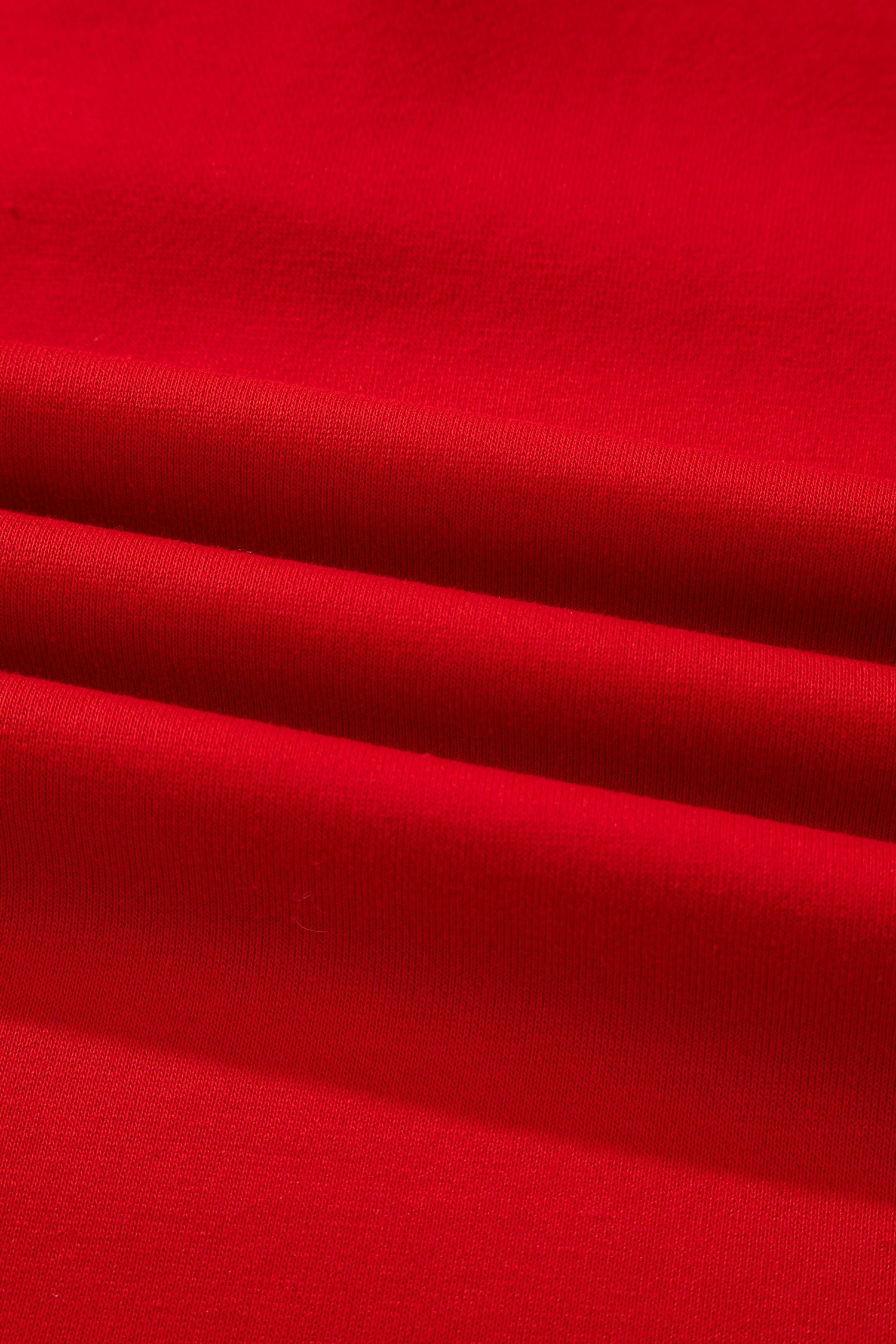 Fiery Red Contrast Striped Collar Patchwork Puff Sleeve Ruffle Hem Mini Dress