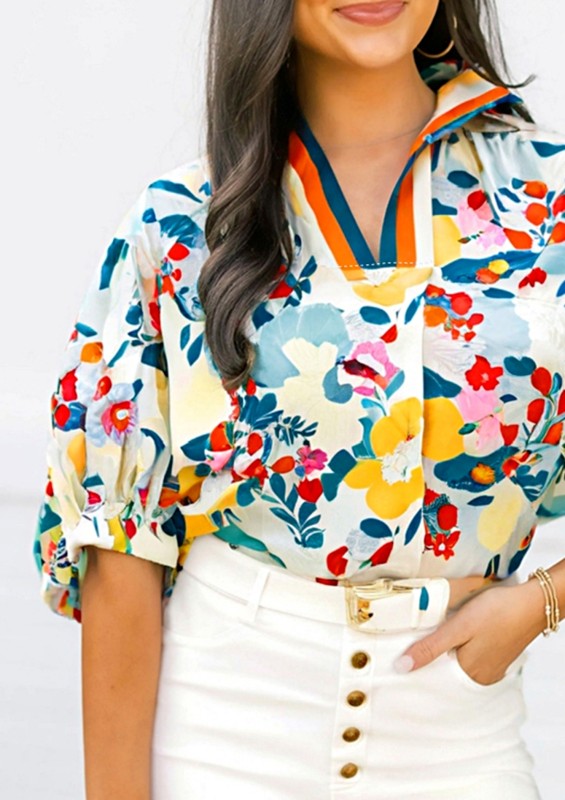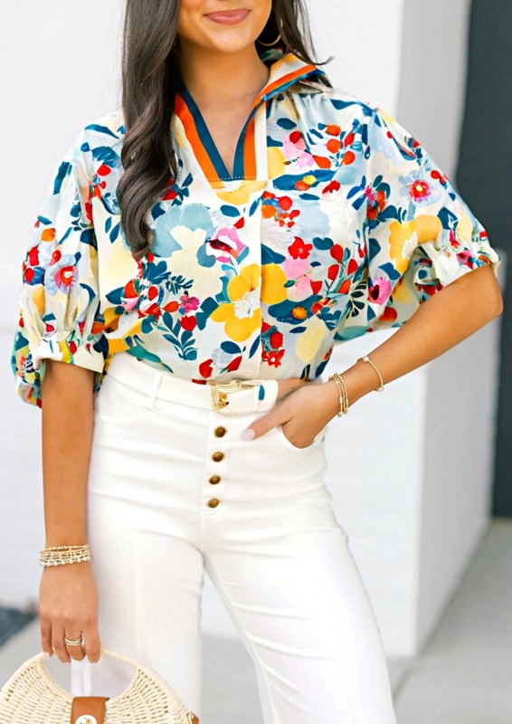 The delicate floral print adds a touch of femininity to this blouse, while the puff sleeves give it a whimsical and romantic feel.