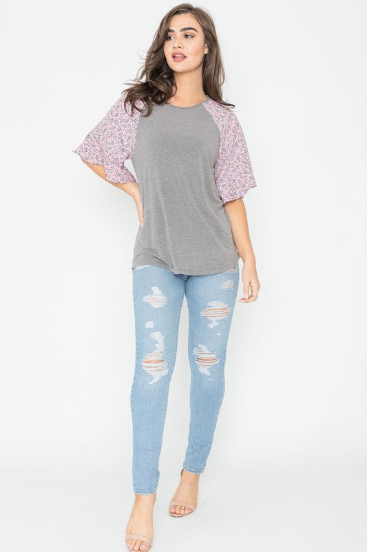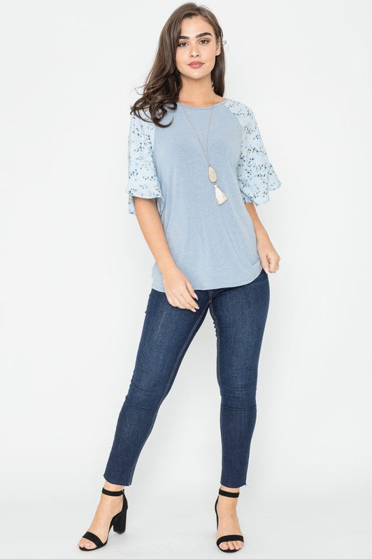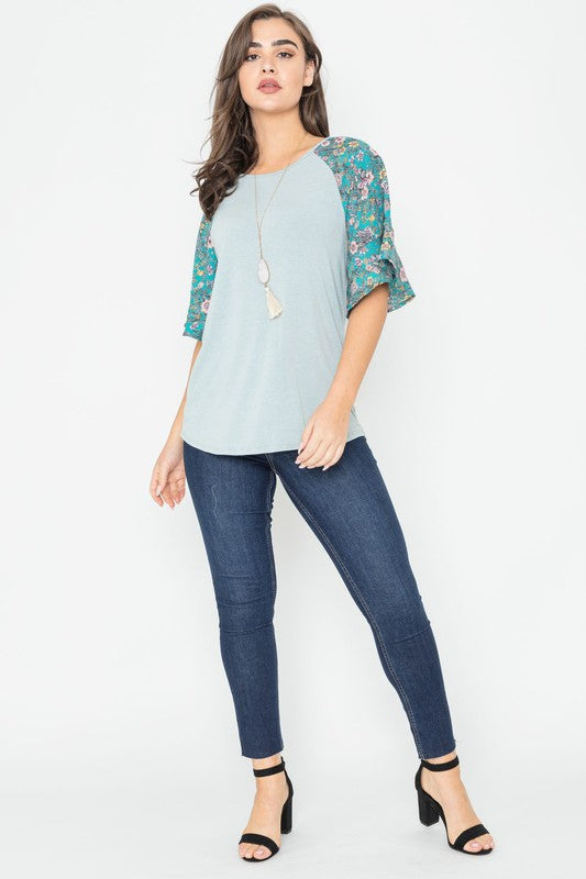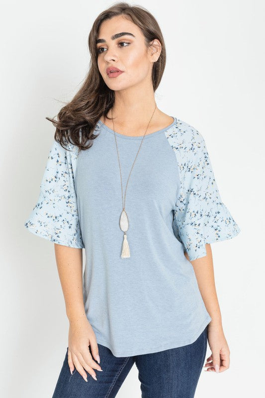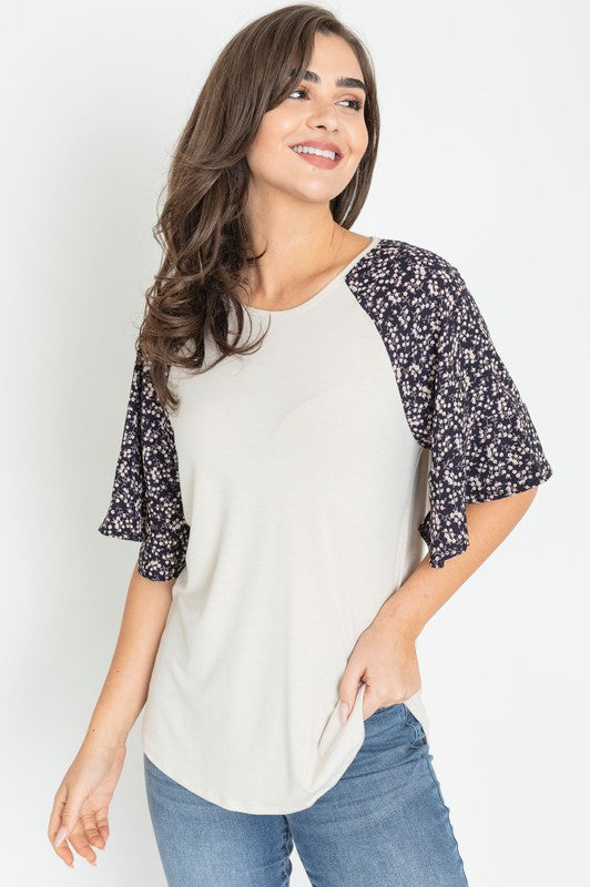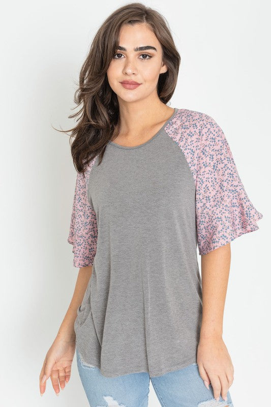 Floral Ruffle Sleeve Tunic