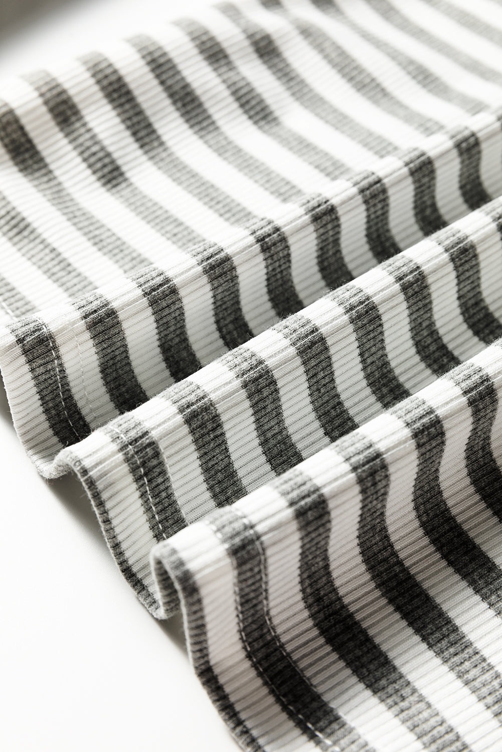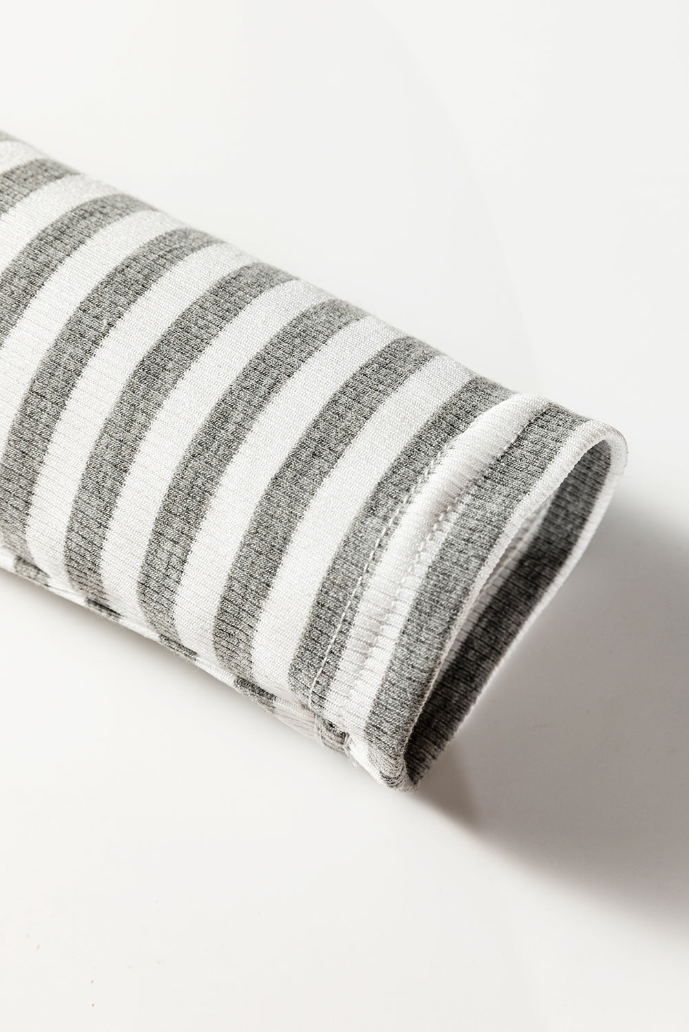 Gray Stripe Ribbed High Neck Slim Fit Long Sleeve Top