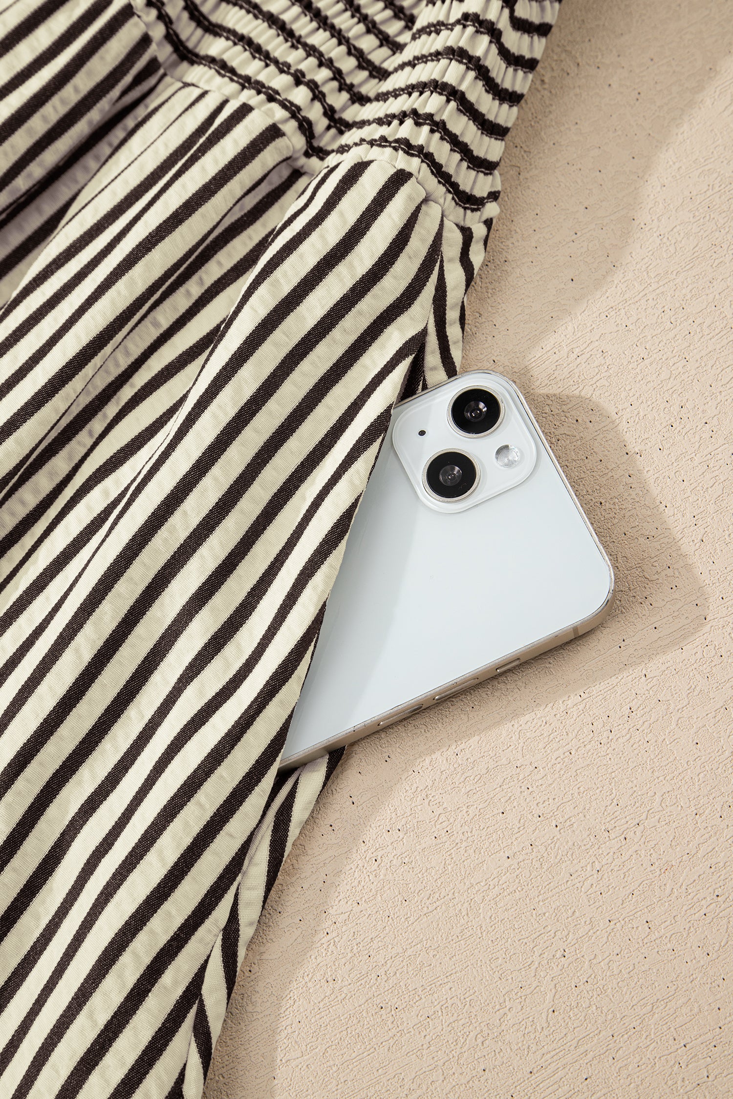 Green Stripe V Neck Zip Front Cinched High Waist Midi Dress