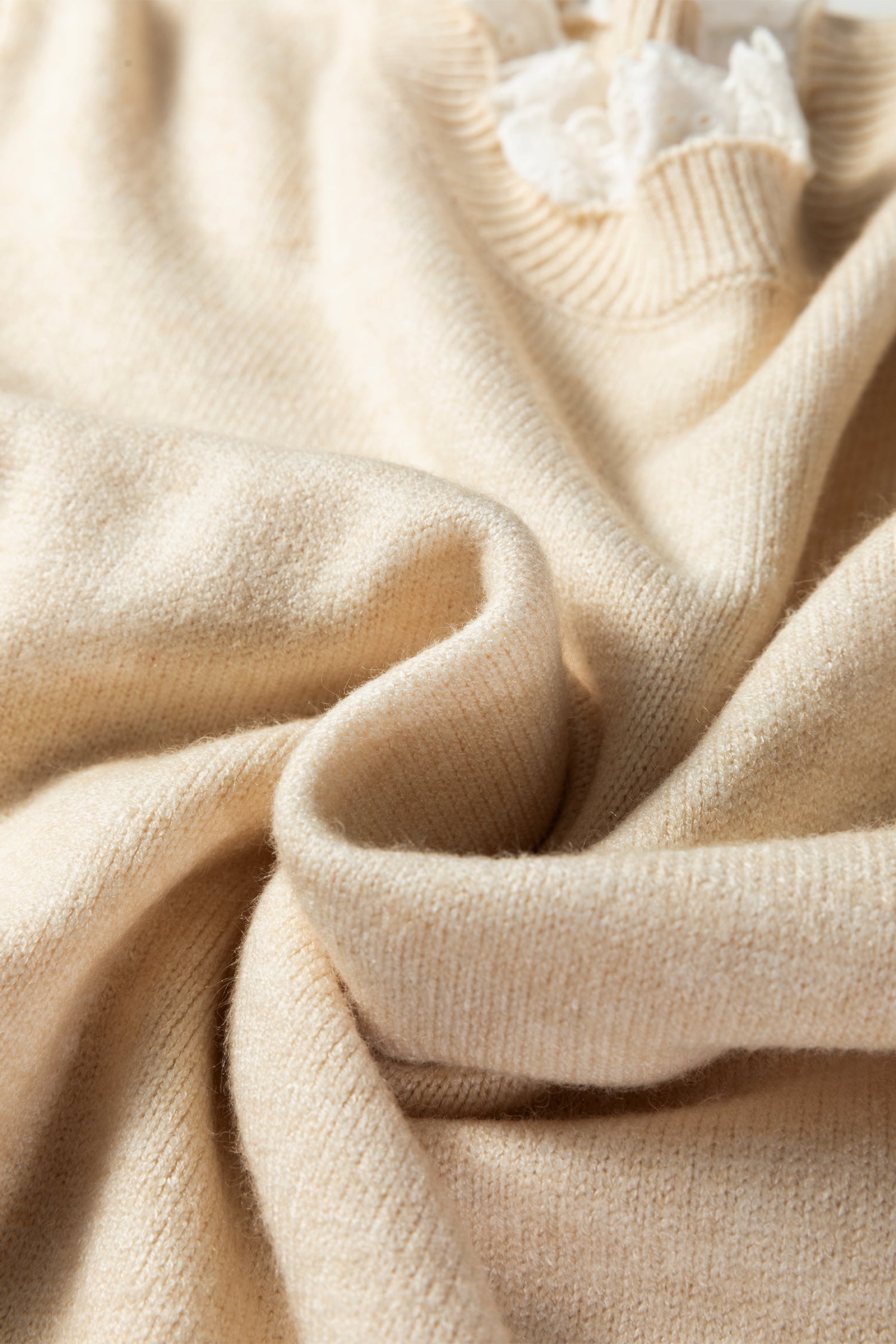 Jet Stream Lace Trim Patchwork Buttoned Cuffs Loose Sweater