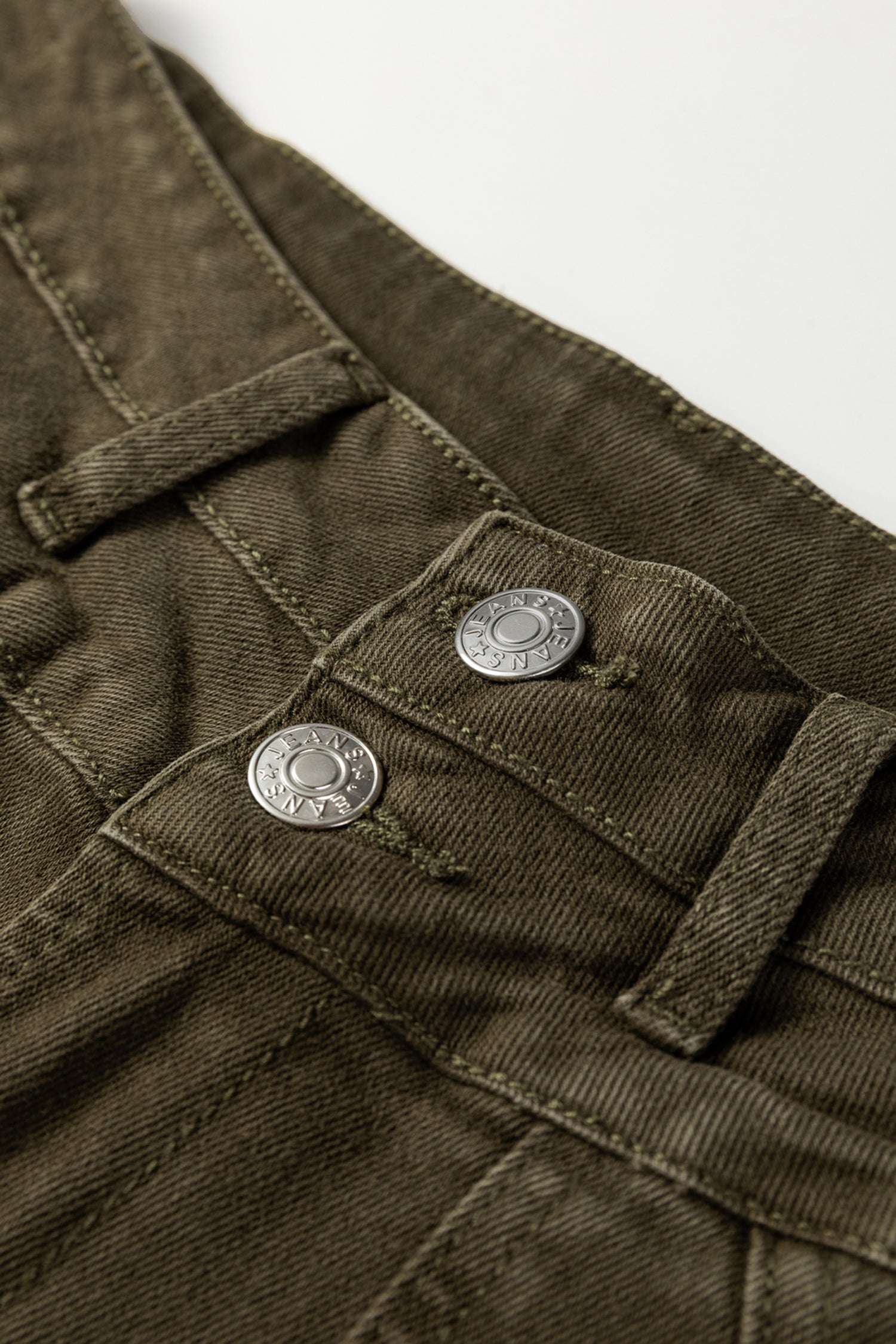 Jungle Green Double Waistband Loose Straight Jeans