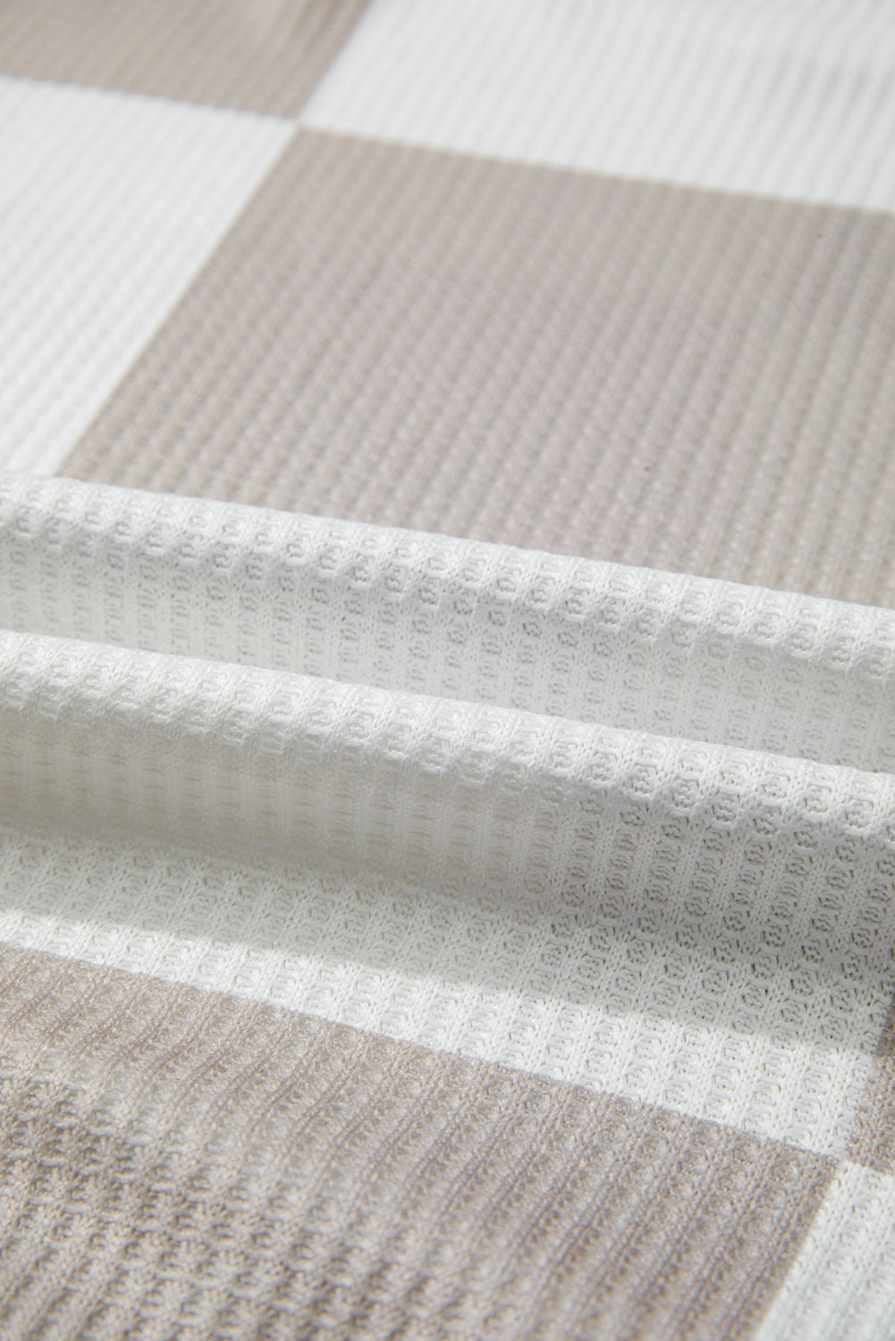 Khaki Checkered Print Breathable Textured Long Sleeve Top