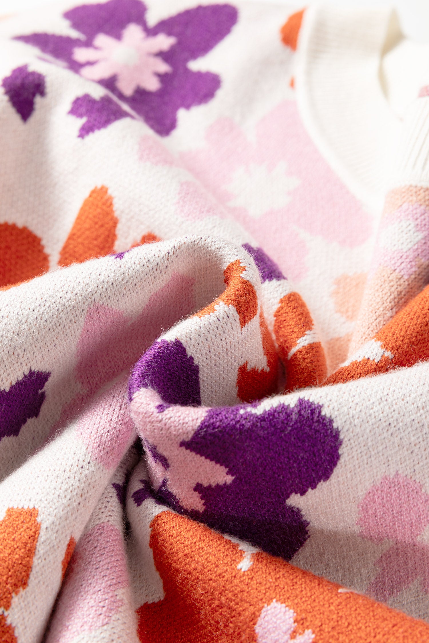 Khaki Fall Floral Pattern Drop Shoulder Sweater