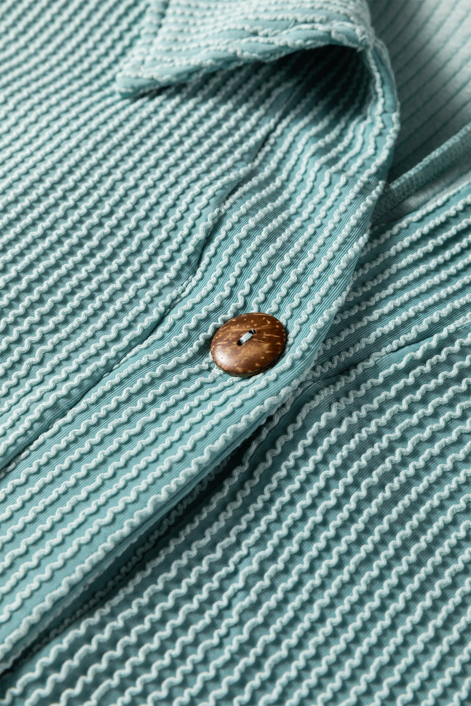 Light Blue Oversized Twist Ribbed Collared Henley Top with Roll up Sleeve