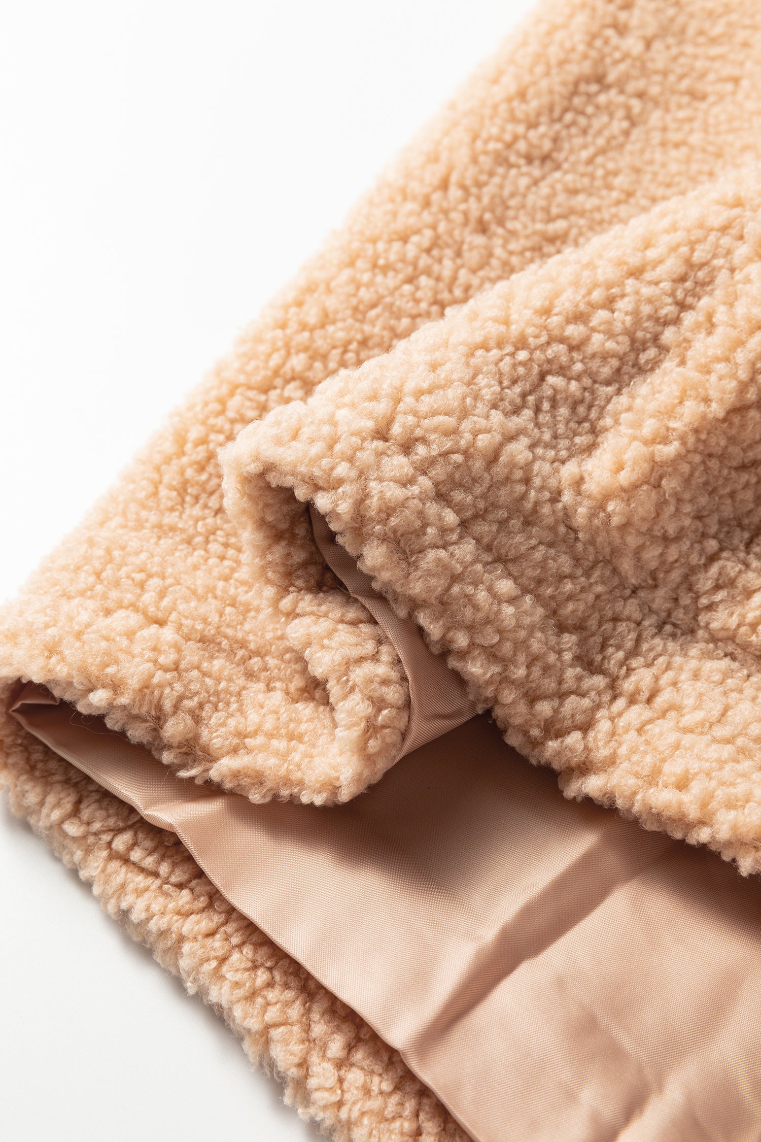 Light French Beige Big Button Accent Fuzzy Pocket Vest