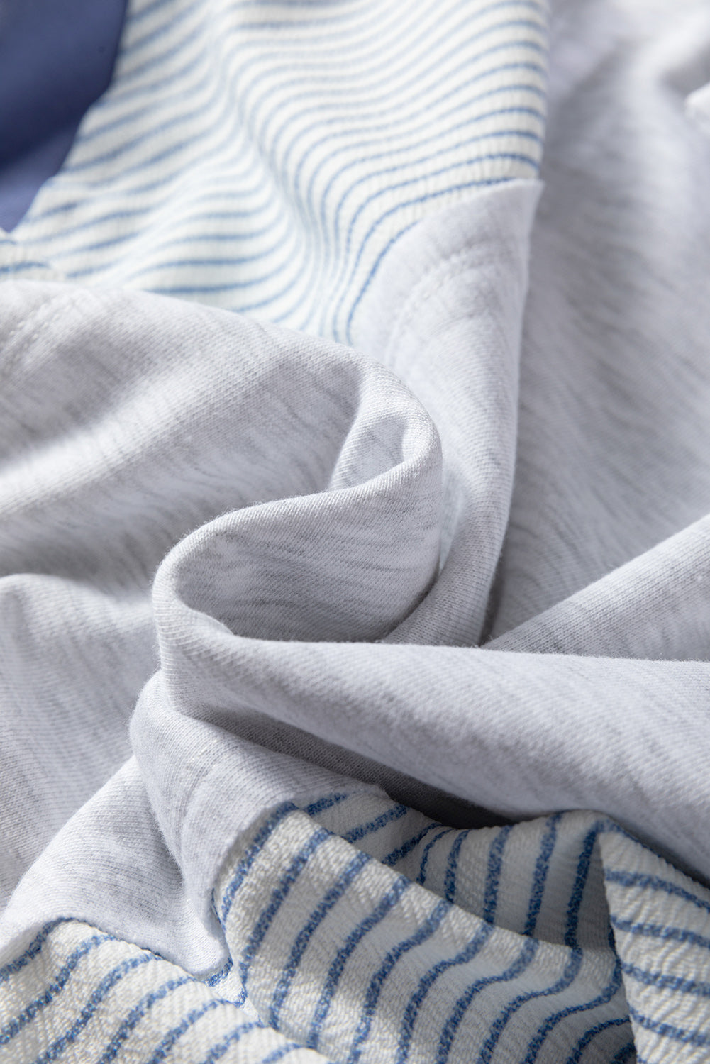 Light Grey Oversized Striped Colorblock Dolman Sleeve Collared Casual Top