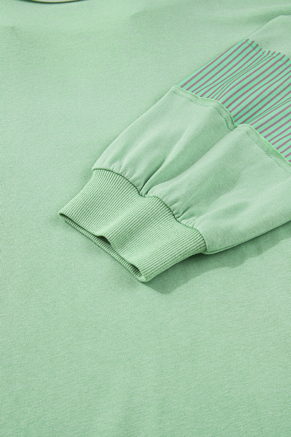 Moonlight Jade Color Block Striped Patchwork Collar V Neck Plus Size Sweatshirt