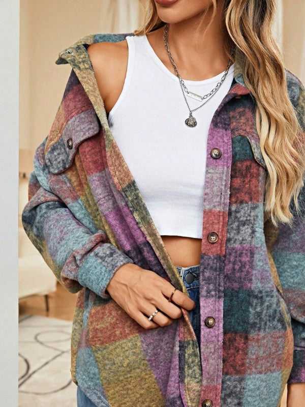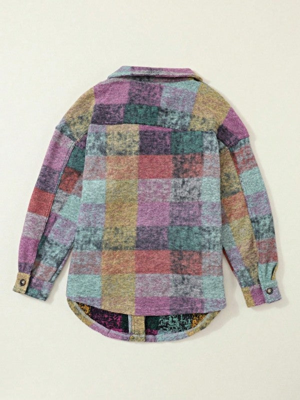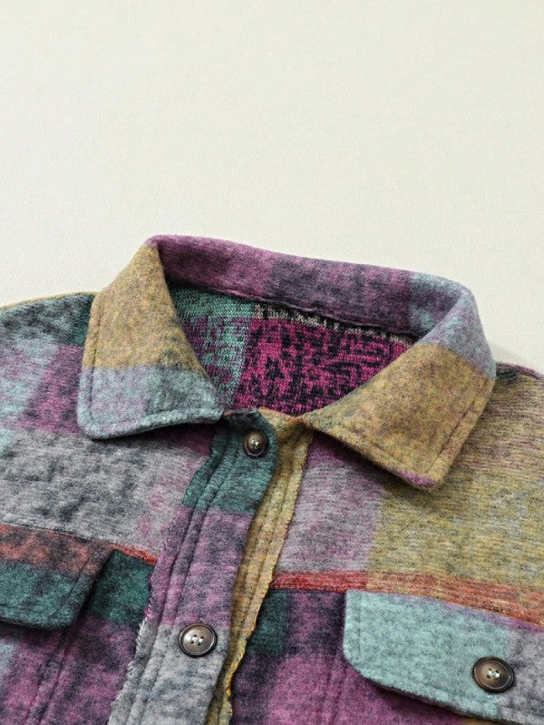 Mustard Red Mint plaid button Shacket Cardigan