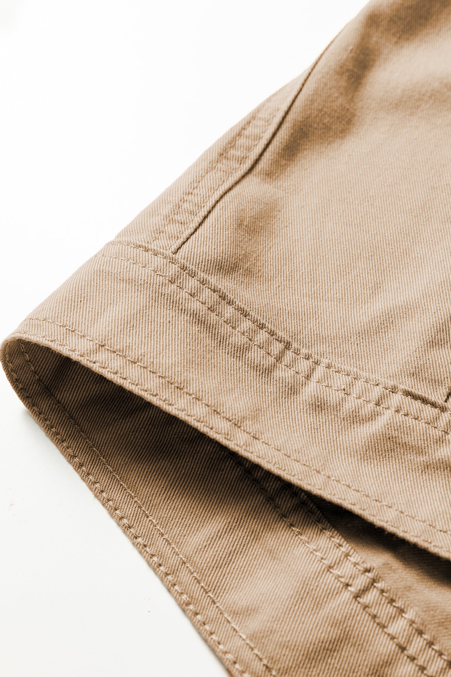 Pale Khaki Ruffled Patchwork Denim Jacket Vest
