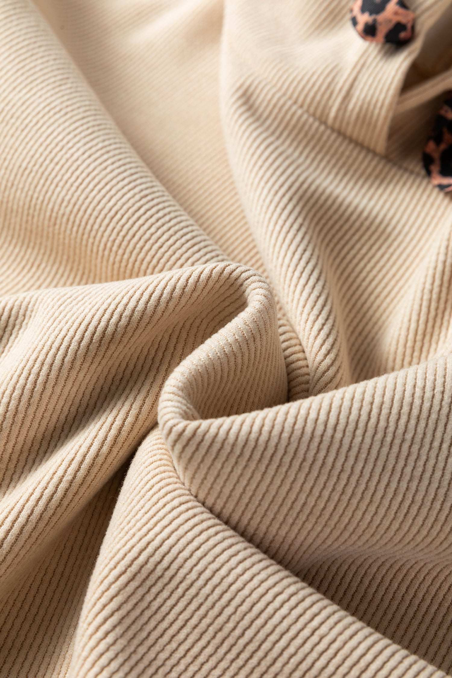Parchment Thermal Textured Leopard Drawstring Baggy Hoodie