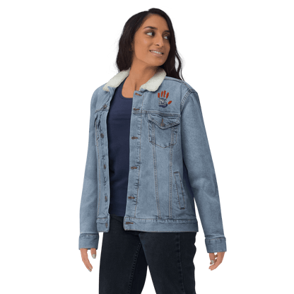 Patriotic Handprint Unisex Denim Sherpa Jacket