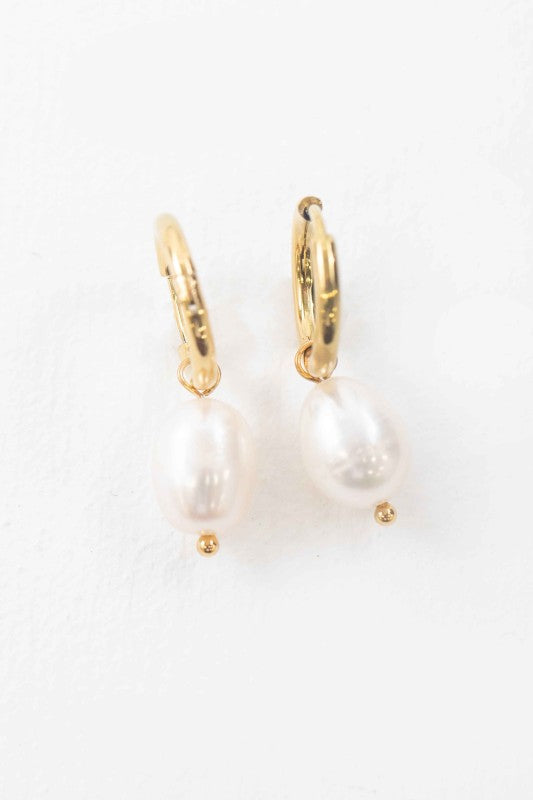 Gold huggie hoop earrings with a single pearl. To mimic natural pearl, all pearls are not the same shape.