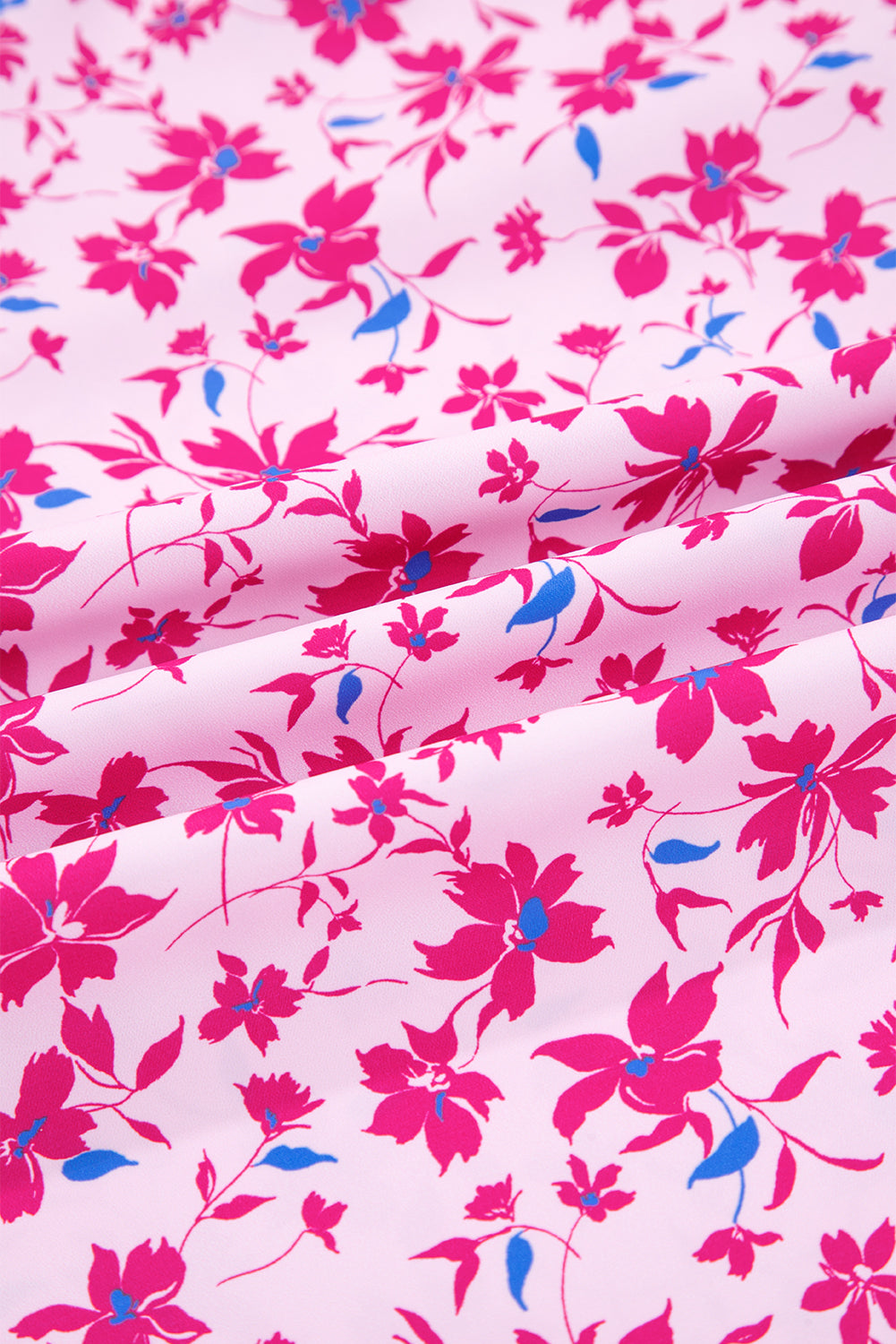 Pink Boho Mixed Floral Drop Shoulder Bubble Sleeve Blouse