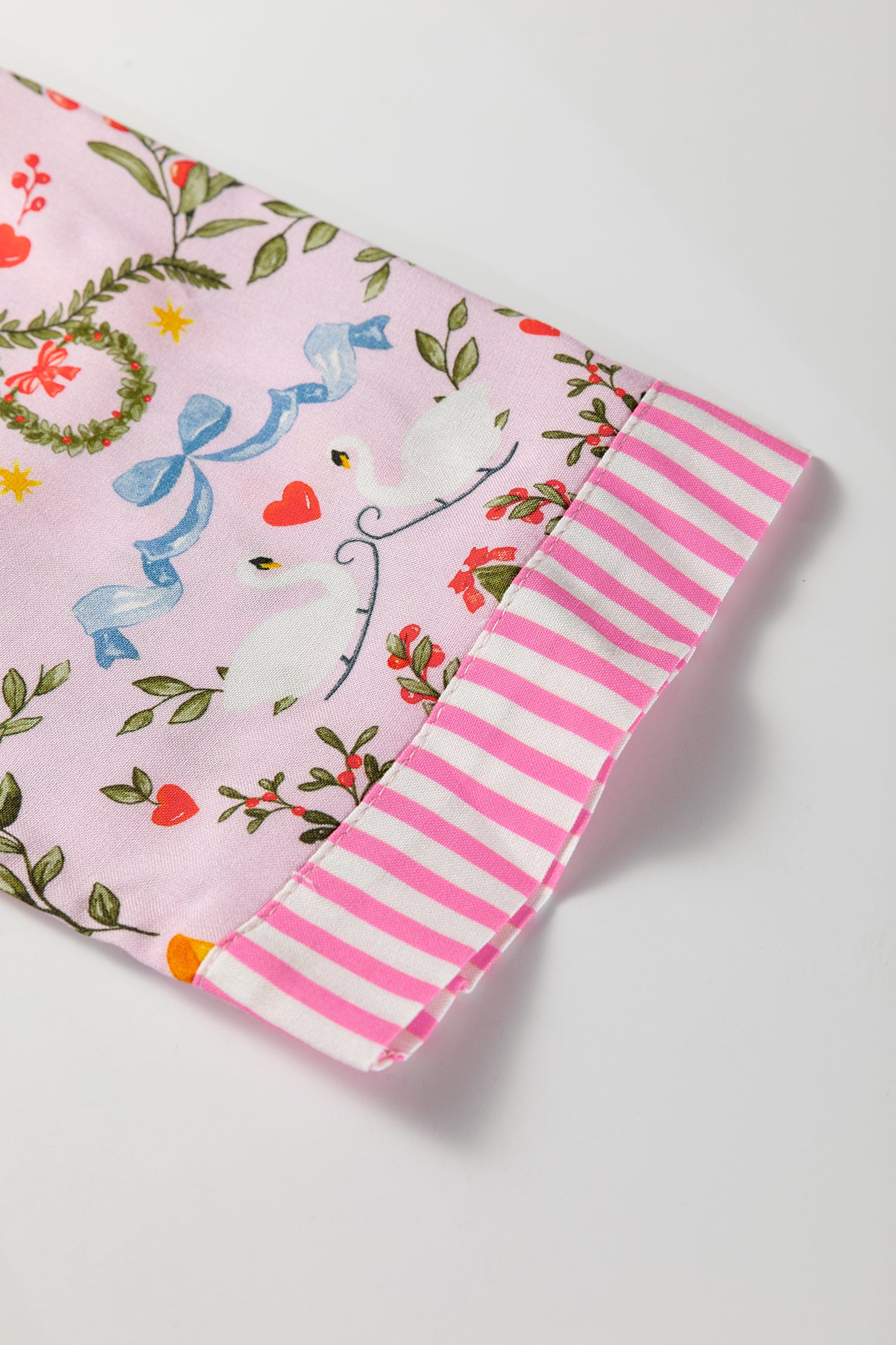 Pink Christmas Holiday Print Nutcracker Long Sleeve Shorts 2pcs Pajama Set
