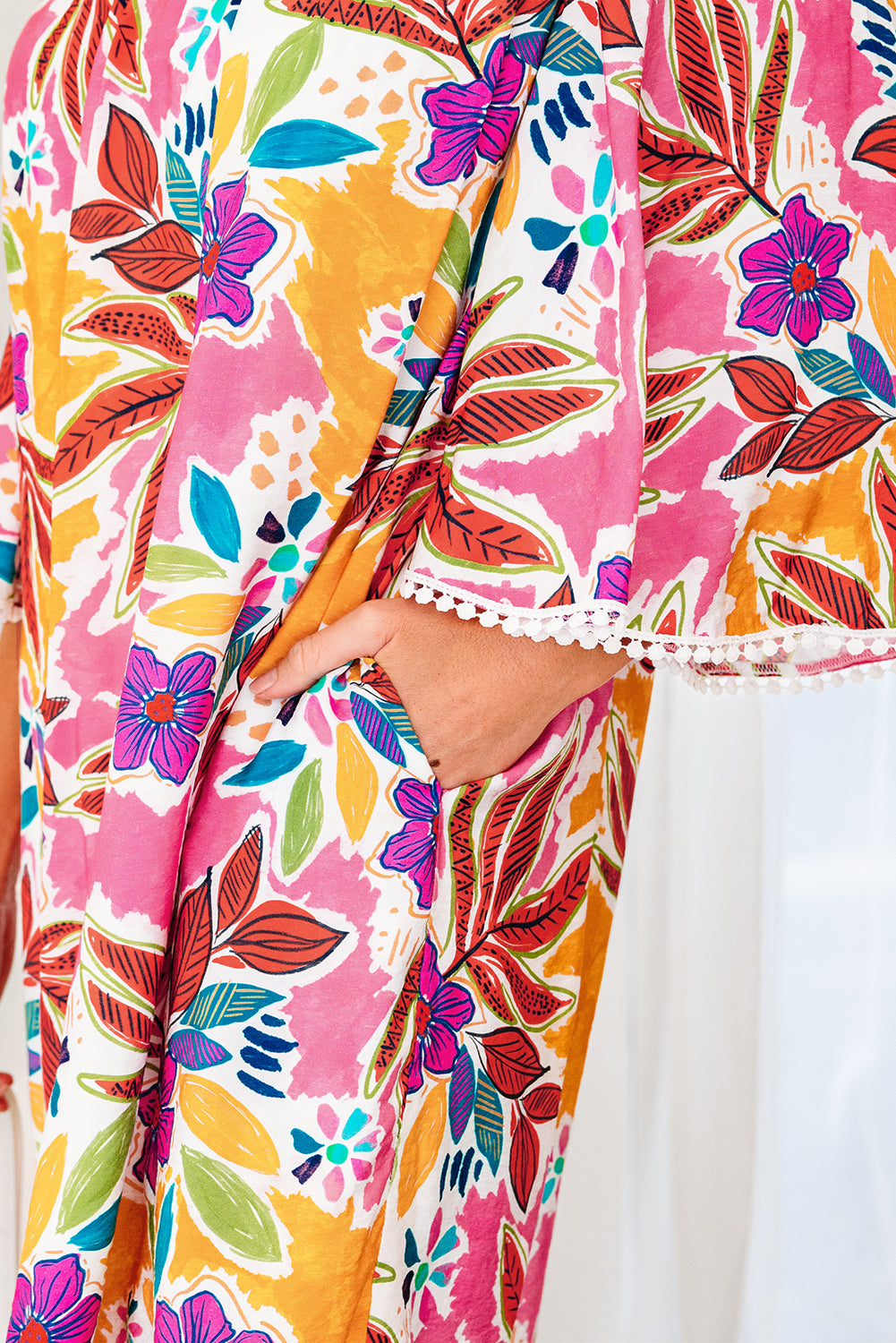 Flowing bell sleeves create a graceful silhouette and offer a whimsical, boho vibe.