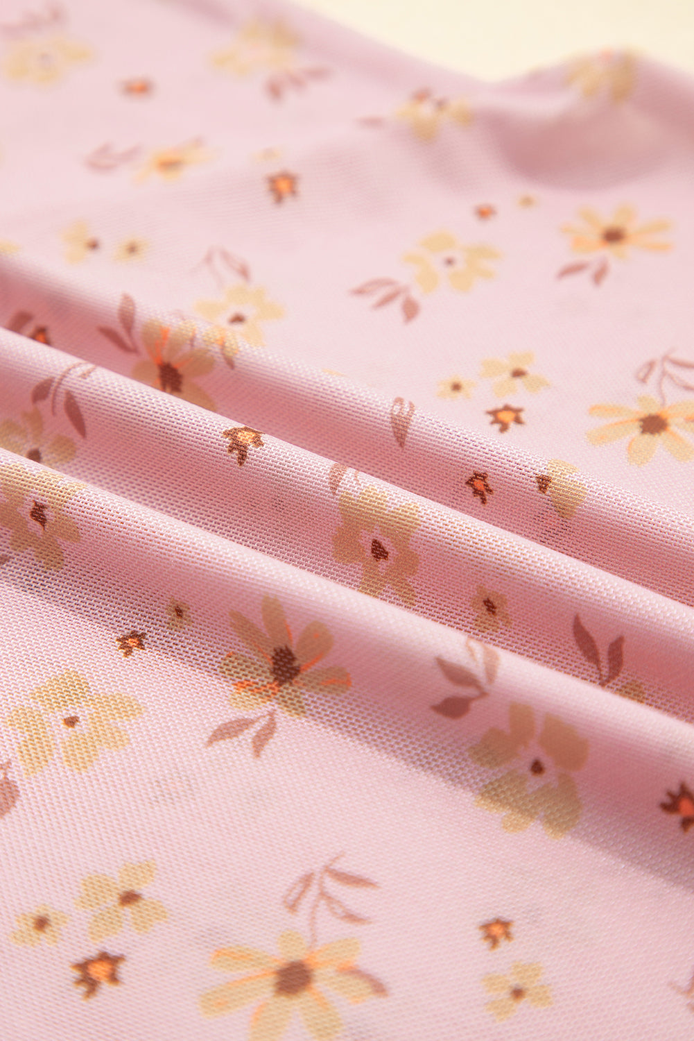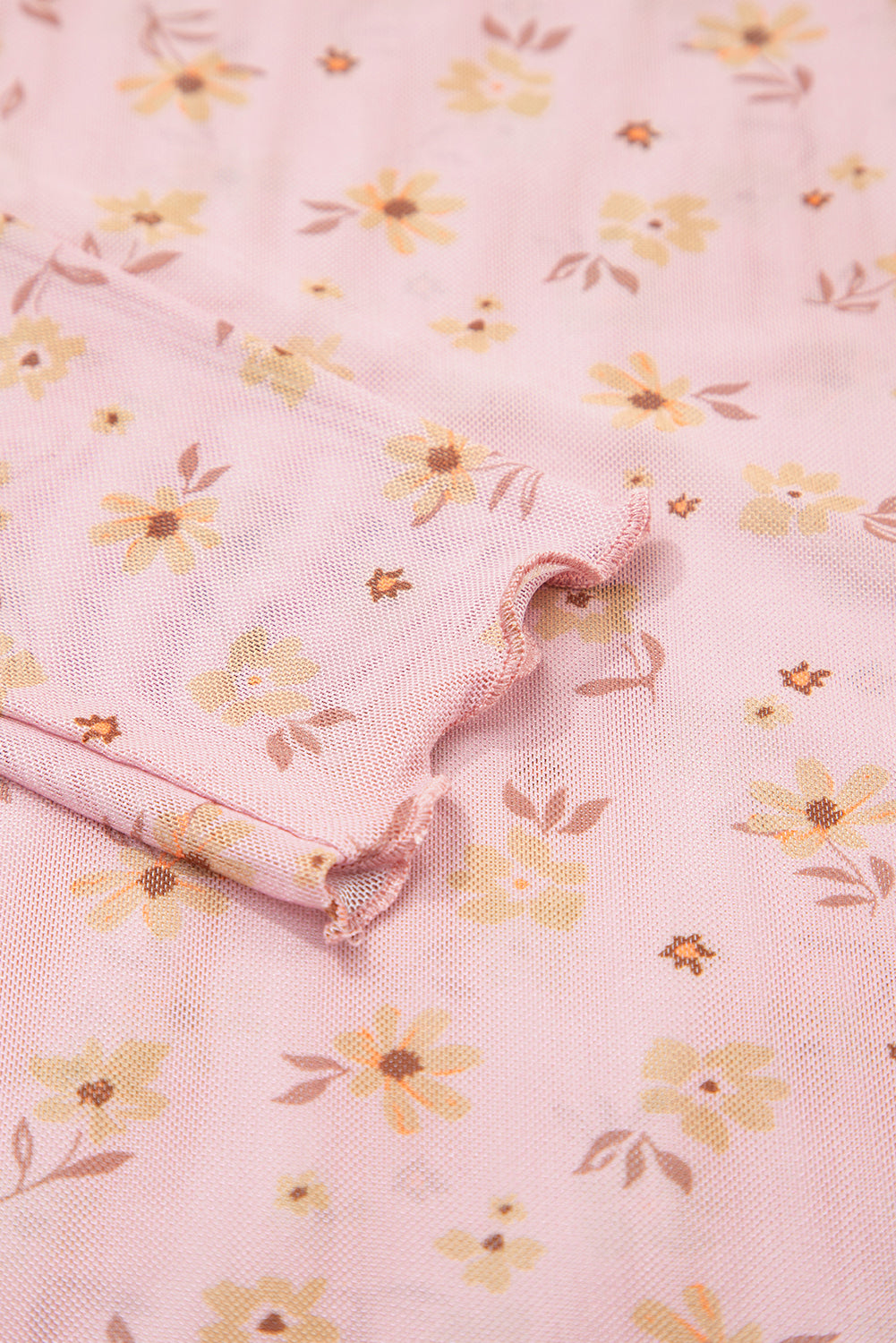 Pink Vintage Floral Print Southern Style Mesh Long Sleeve Top