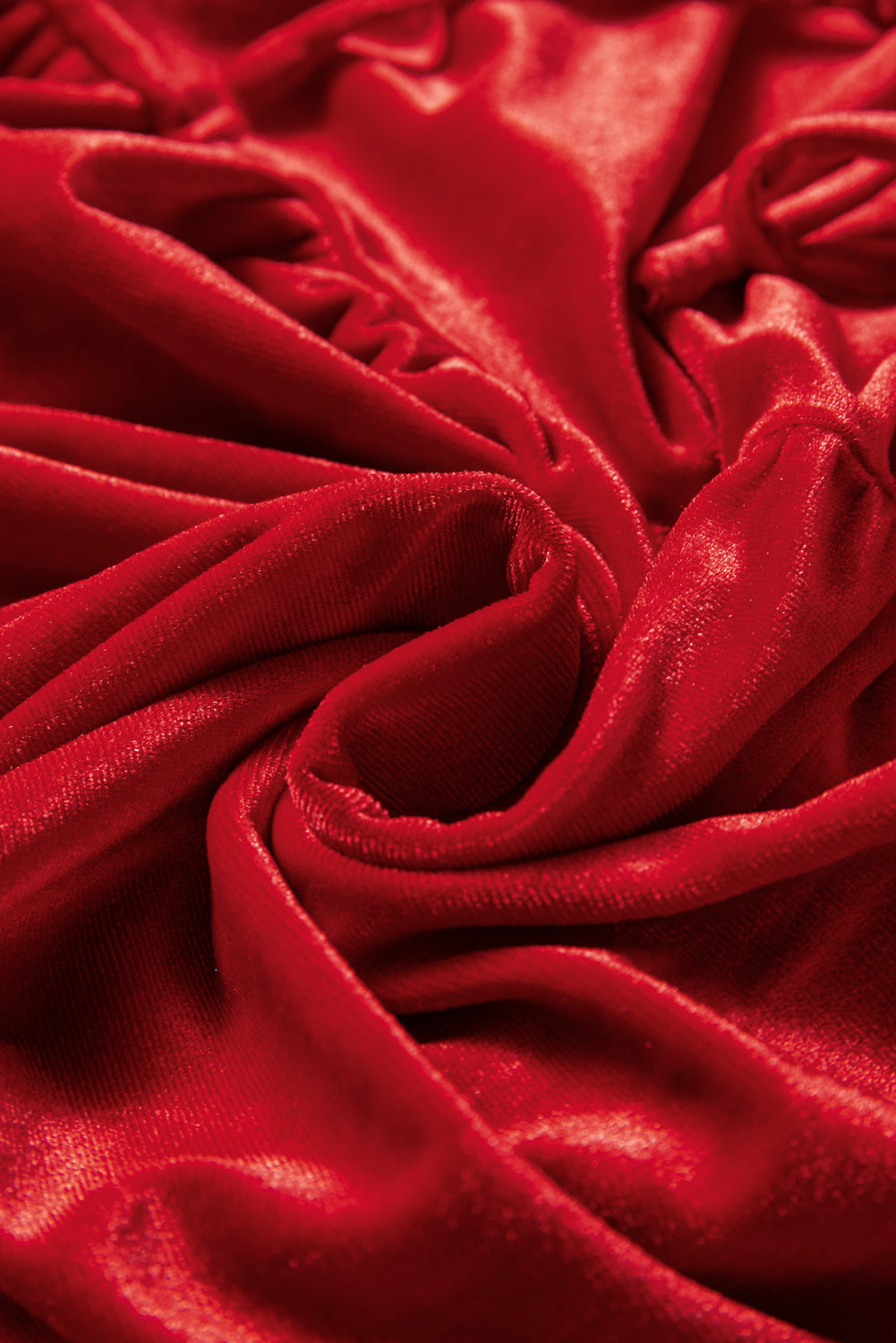 Red Clay Plus Size Tie Front Velvet Peplum Blouse