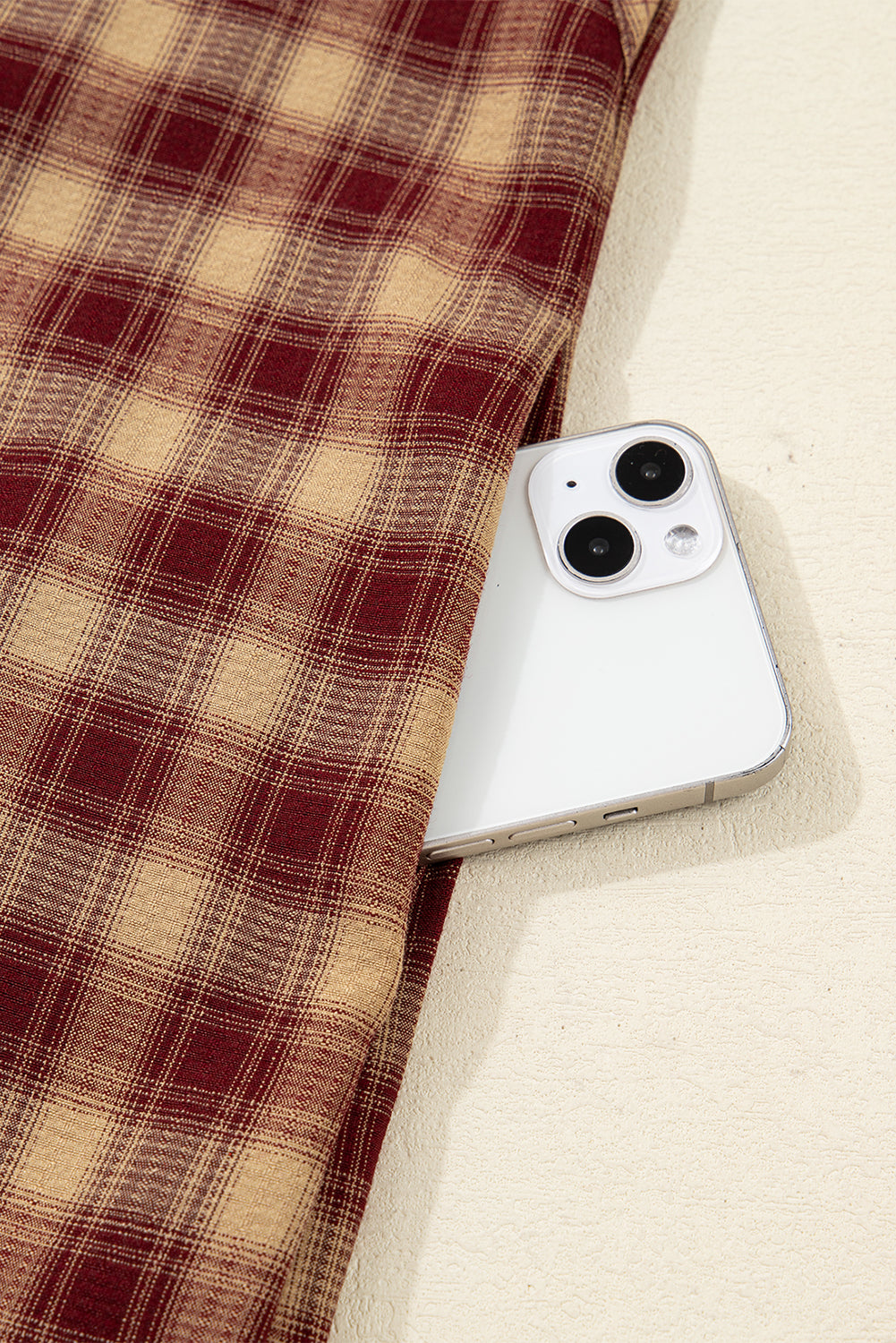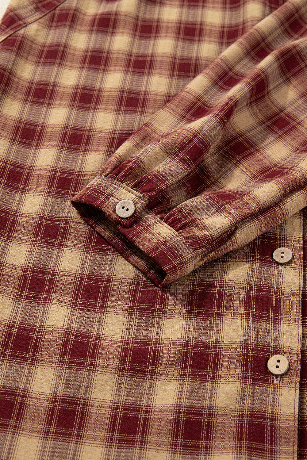 Red Plaid Print Ruffled Long Sleeve Patchwork Hem Mini Shirt Dress