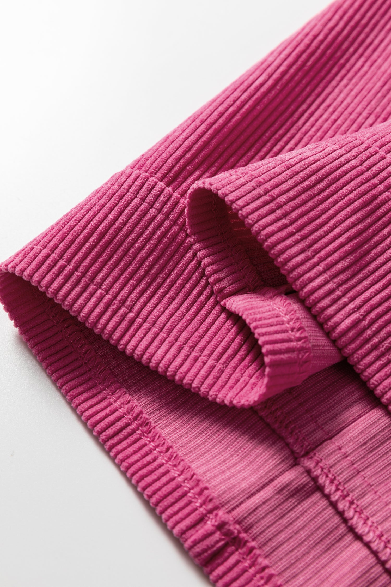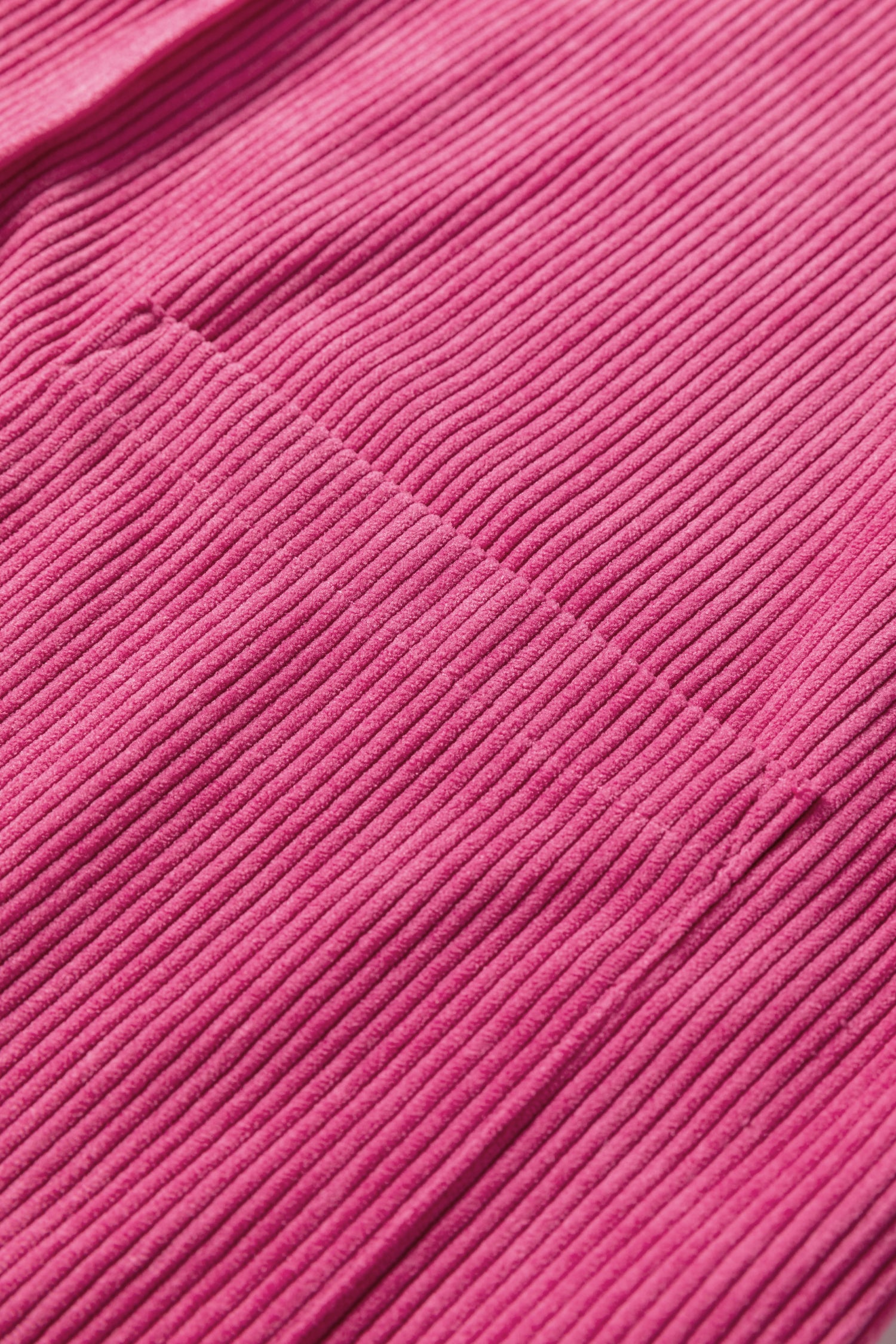 Rose Red Corduroy Sleeveless Mini Dress With Patched Pockets