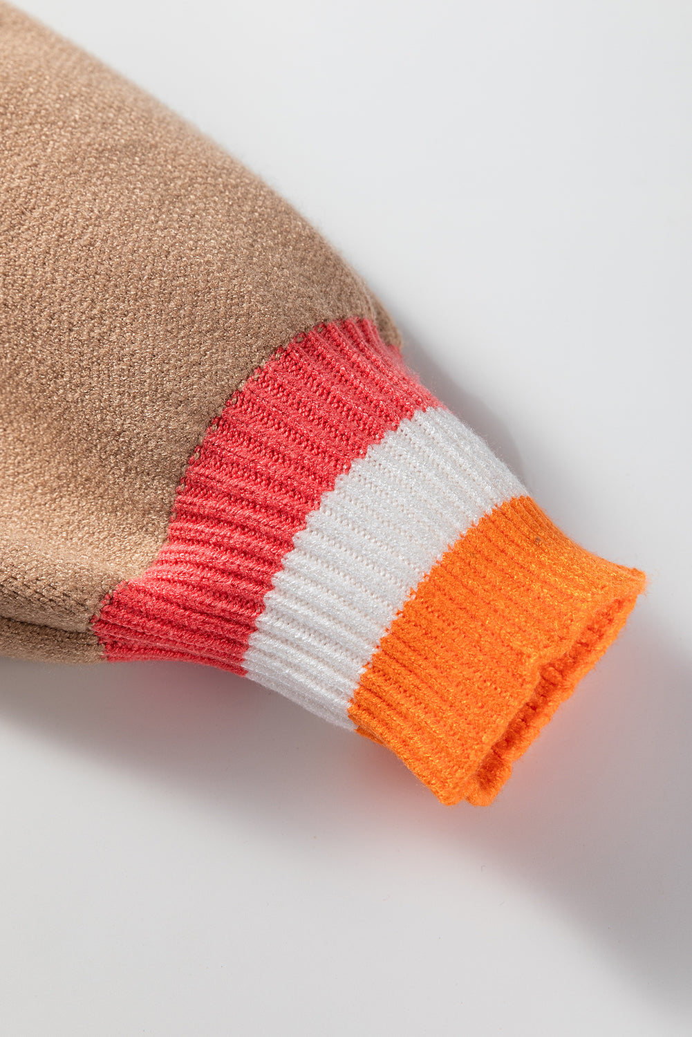 Smoke Gray Big Flower Pattern Contrast Striped Baggy Sweater