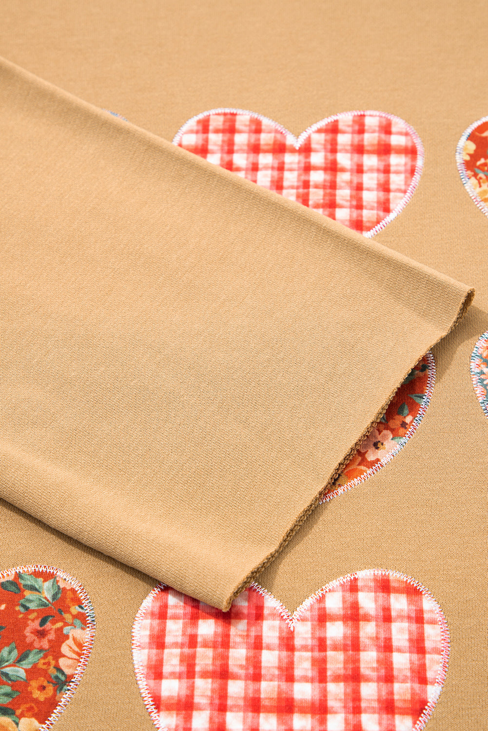 Straw Yellow Plaid Floral Heart Stitched Exposed Seam Mineral Wash Sweatshirt