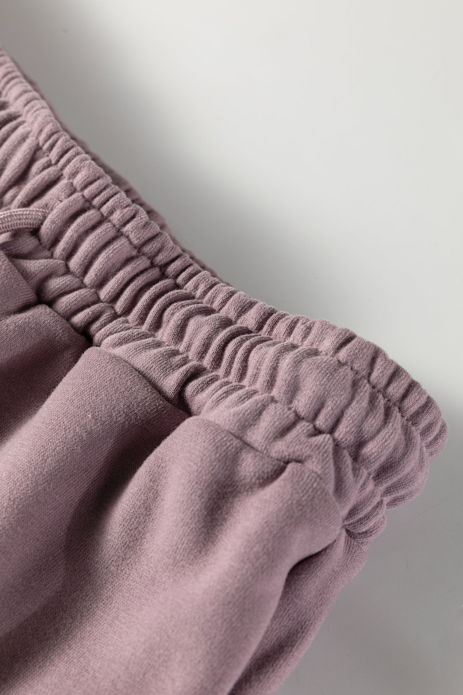 The relaxed two-piece set includes a hoodie pullover and casual shorts.
